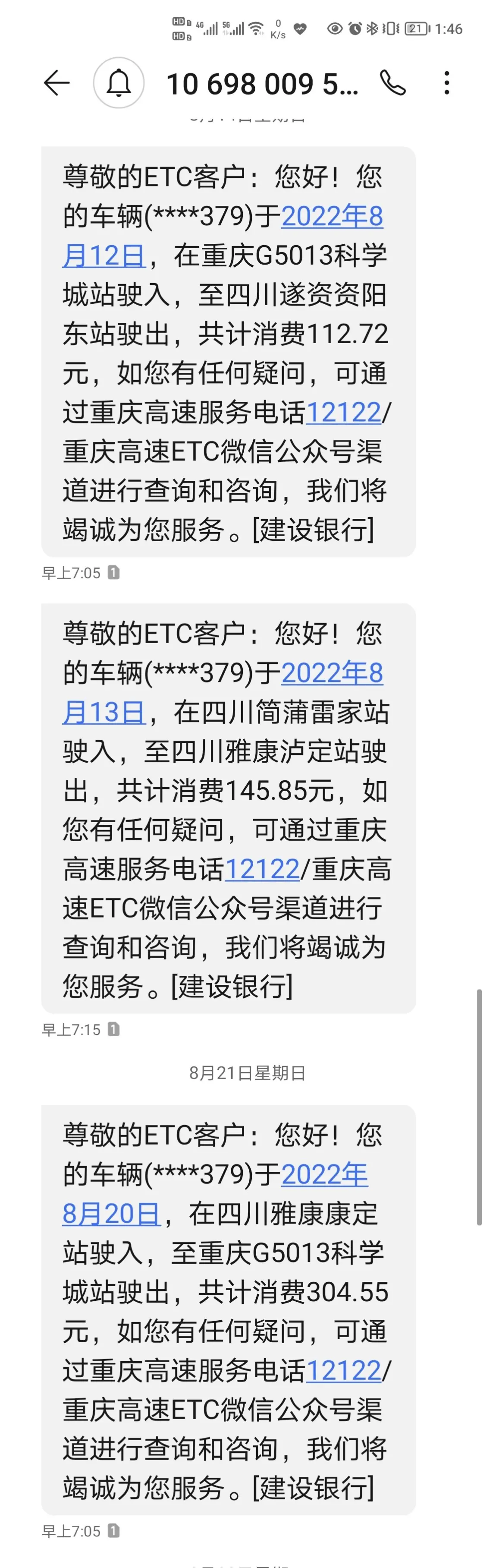 Ø8月20日4:30核酸结果出来后出发返渝(因为小朋友16:00要参加全国锦标赛),一路下坡开着高回收基本上没耗多少电到了蒲江服务区用国家电网补电,24分钟补电18.44度,费用15.86元,一路开回重庆还剩余续航60公里,ETC费用304.55元。