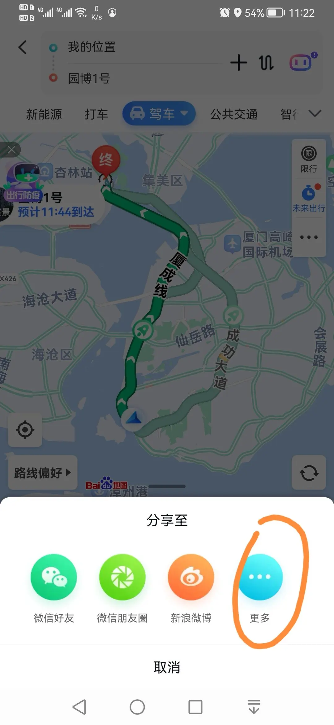 方式二:通过第三方应用发送地址到车。打开第三方的生活服务或位置服务类应用,选中目的地,点击【分享—更多—发送到小鹏】,即可将指定的目的地地址发送到车辆。