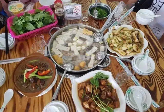爸爸拿了两个盘子,用捞勺盛了很多“美味”上来。这时,爸爸叫的醋猪脚、三层肉炒豆芽也上来了。我倒了一碟酱油,又盛了满满一碗饭,夹了一大块汤锅里的肉,蘸蘸酱油,啊呜全吞进了嘴里。嗯,又软又有嚼劲,再加上酱油的香味,美极了!