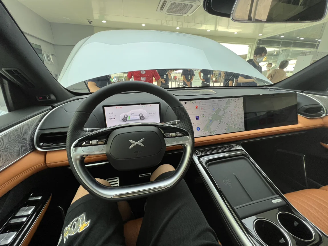 这座位也太舒服了,相较P7,最大的感受就是“软”“高”方向盘在大拇指的握处还有加厚的凹槽,从细节上能够明显感受到比P7要高大上,很舒服。视野上比P7高不少,虽然是个庞然大物,但是从静态体验上,从主驾的视角并没有感觉很大很宽。赶快坐副驾再体验下传说中的女王座。