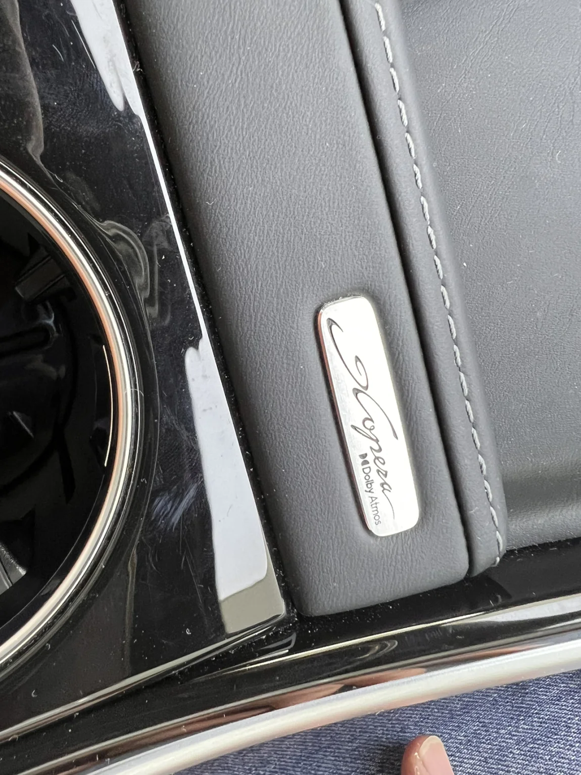这个大连屏的边框缩窄后对视觉的冲击挺大的,功能一目了然,旁边的手机置放位置也很顺手,不像P7横着放手机,拿的时候多少是有些不便的,不过无线充只有左边有确实很遗憾。杯架的升降也很具有科技感。然后赶紧体验了下座椅按摩,真舒服啊,想象停在海边,开启音乐和按摩,再来一杯冰柠檬水,简直了!