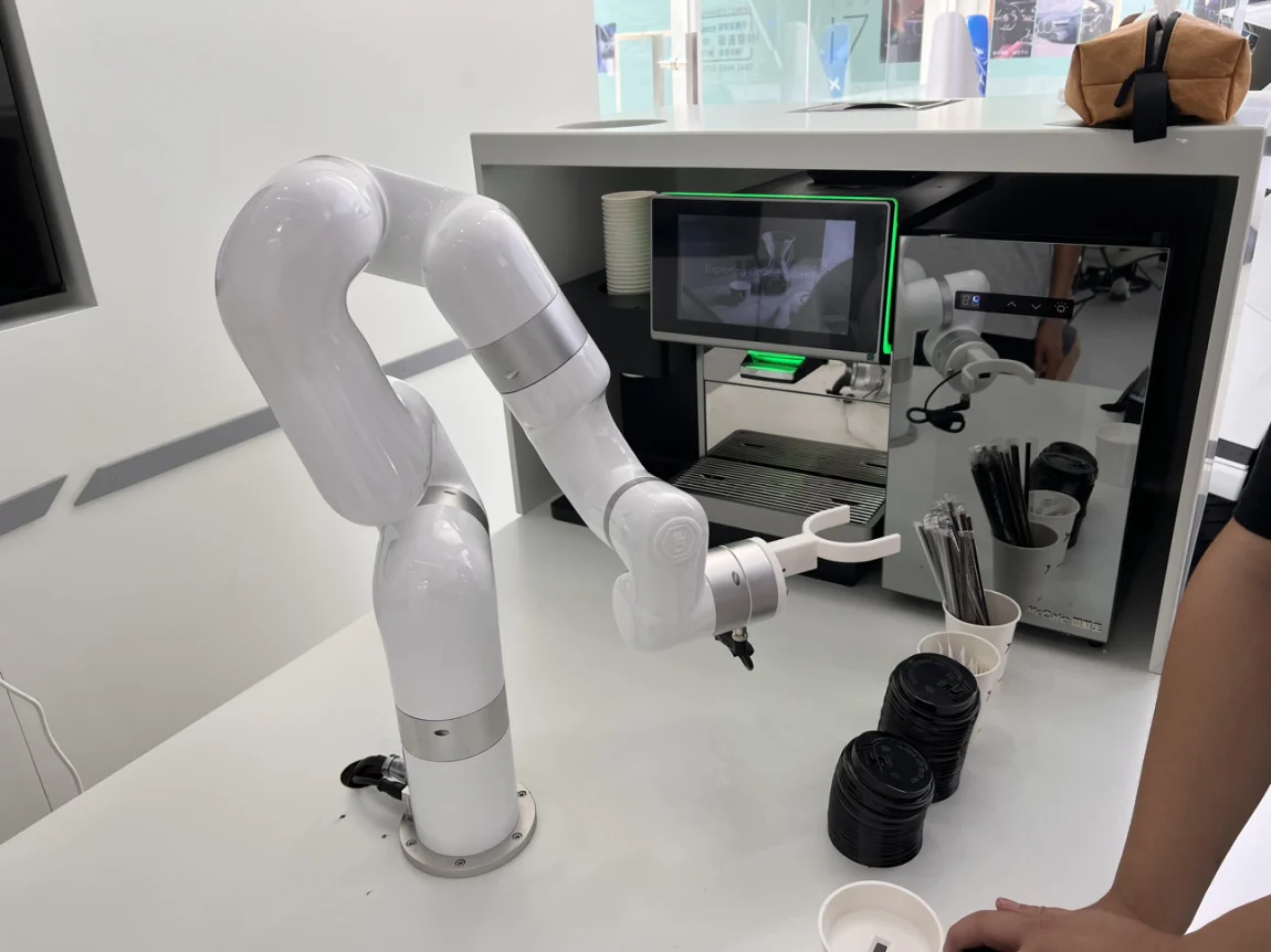 机器手咖啡☕️!在屏幕上点击咖啡种类后,机器手会自动拿杯,接咖啡,然后送到你的面前!这种智能化体验让巡展B格高了不少。