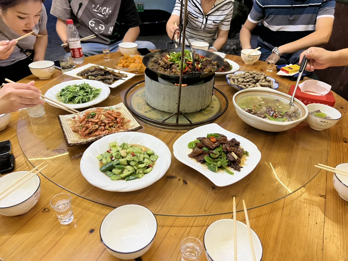 晚上与鹏友们把酒言欢,品尝当地特色吊锅。难得这次来的车多,怎么能不来一场灯舞秀。