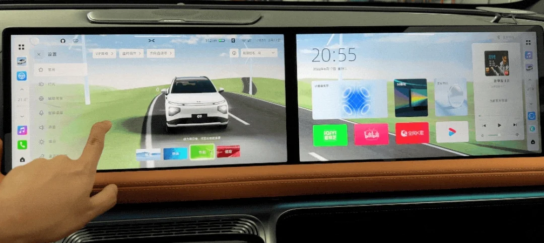 🌺G9座舱的最大亮点之一就是终于用上了双联大屏。车内的双联大屏尺寸均为14.96英寸,分辨率达到了2K,看上去亮度和色彩都很好,即使阳光直射也不影响使用。副驾娱乐屏上还做了防偷窥处理,充分保障副驾乘客隐私性,同时主驾驶在行驶过程中就看不清副驾屏的内容,也避免了驾驶员分心。