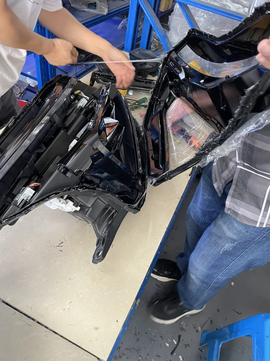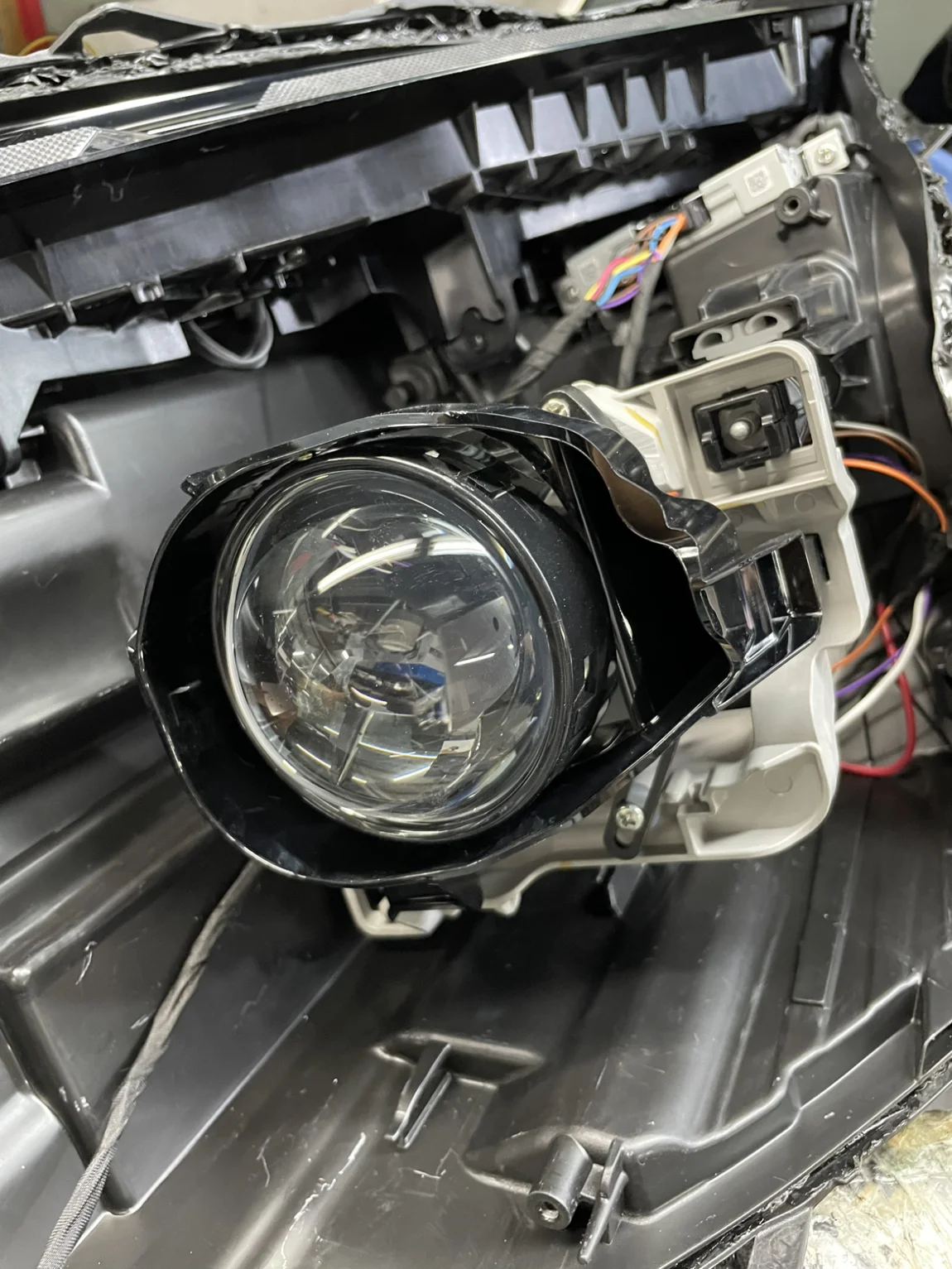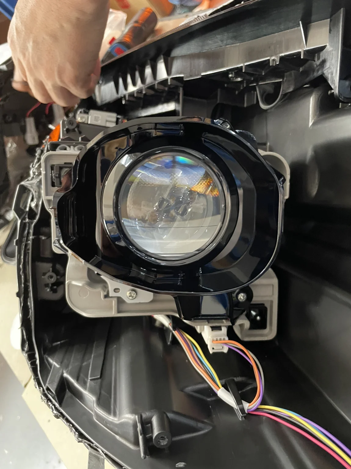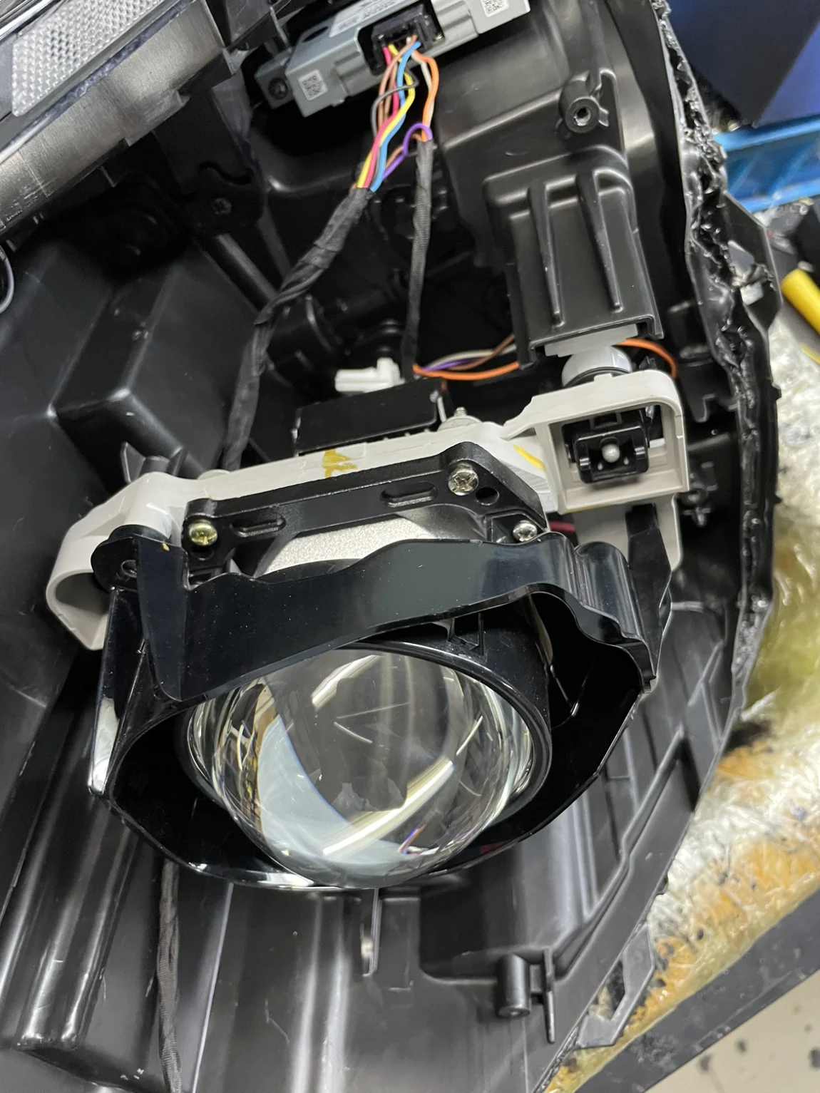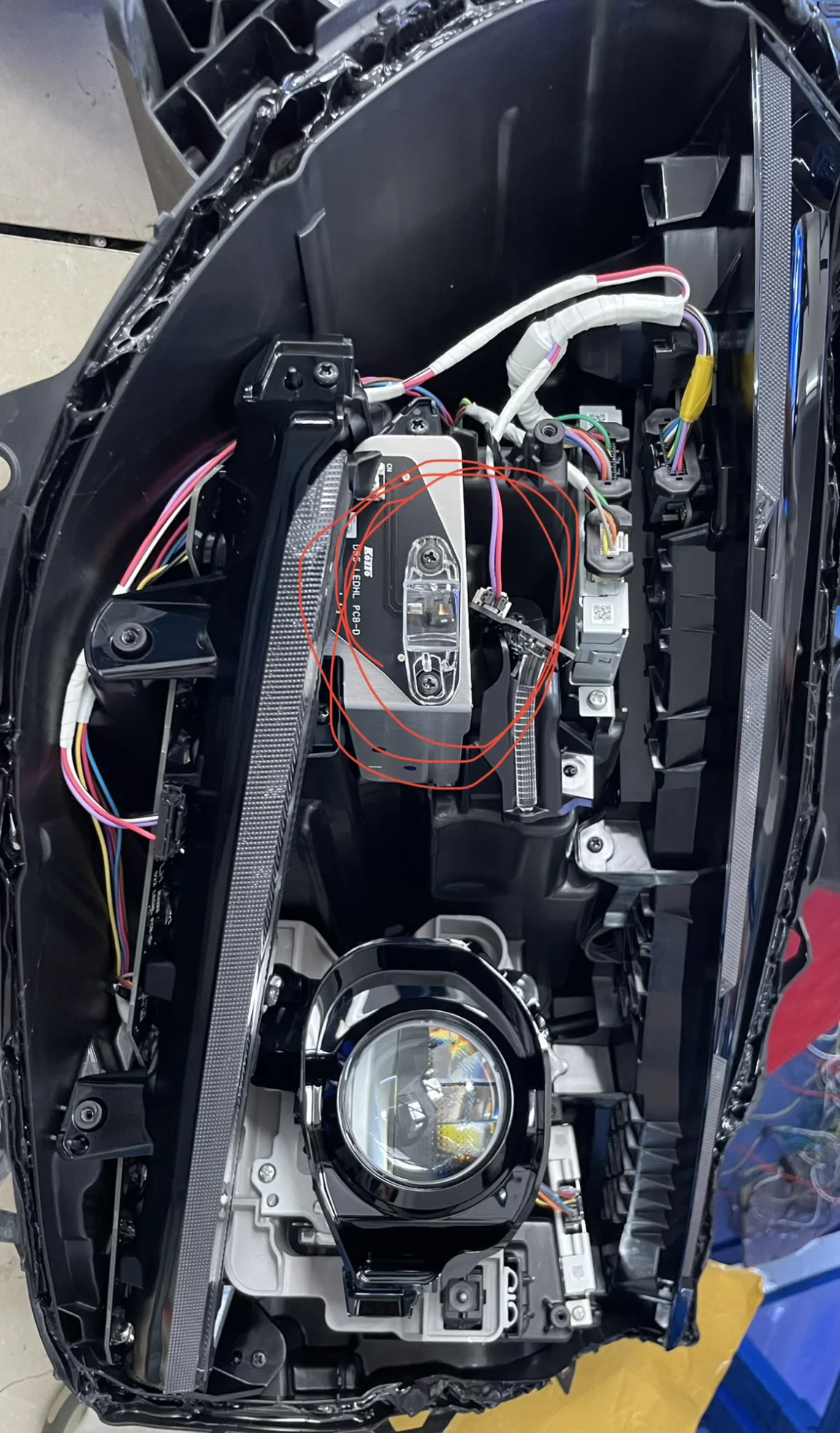 所以还是决定去找人改,我有个朋友是做LED透镜的工厂的。但这个车灯没实体开关,靠感光器启动,我朋友看了半天突然对我说,这款灯没见过,搞不清里面的线路。好在我认识的圈内人多,马上找另外一个专业改灯的朋友。