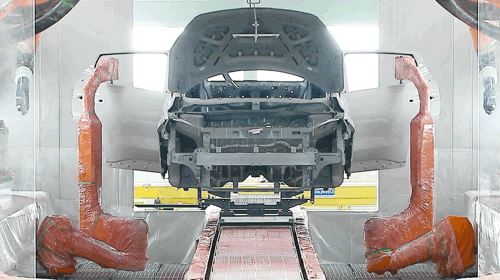 这种工艺是目前汽车喷涂工艺中比较常见的,对应工艺名称为XCXB,比如3C2B工艺,就意味着3次喷涂2次烘烤。而目前比较流行的一种喷涂工艺是2C1B(比较流行的说法是B1B2或IPP工艺),即从电泳完之后,中涂、色漆和清漆层一遍过,最后进烘烤炉进行烤干,检查后运输到总装车间进行组装
