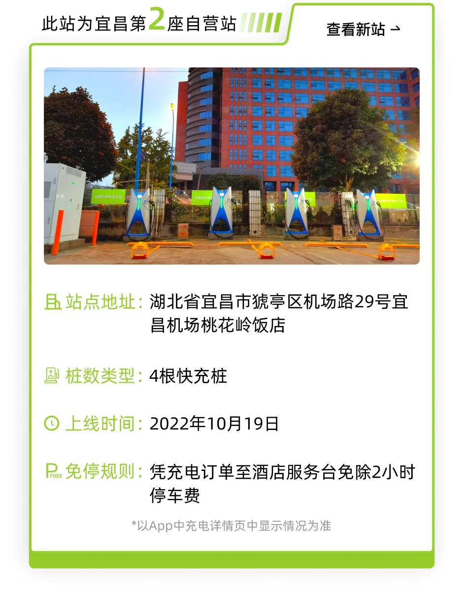新站上线丨宜昌机场桃花岭饭店小鹏超充站