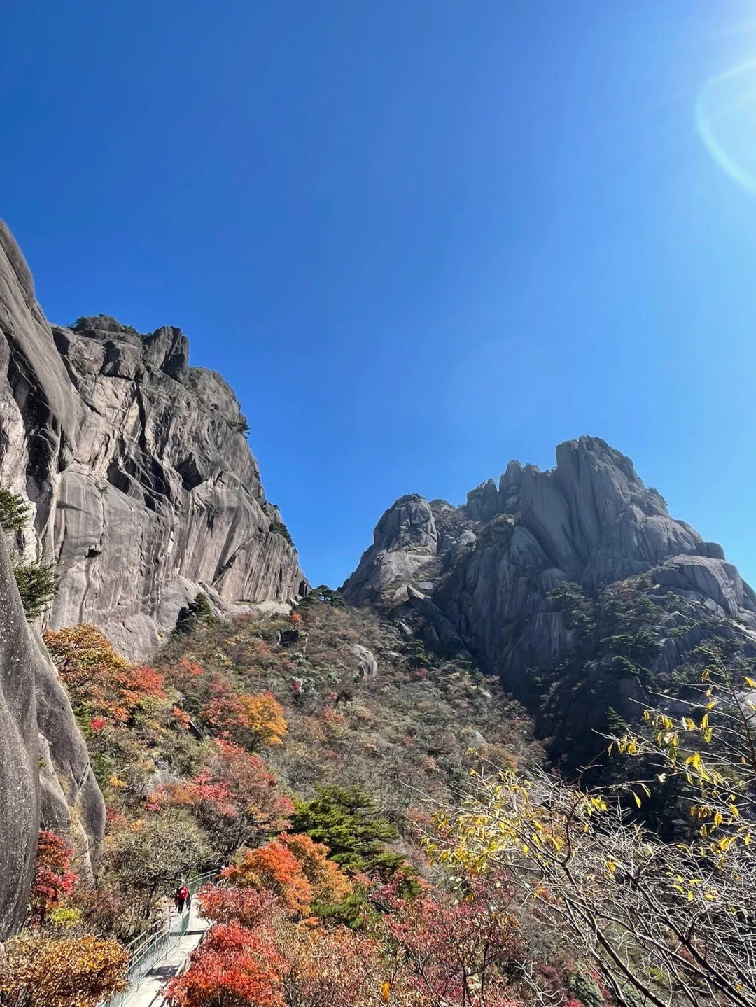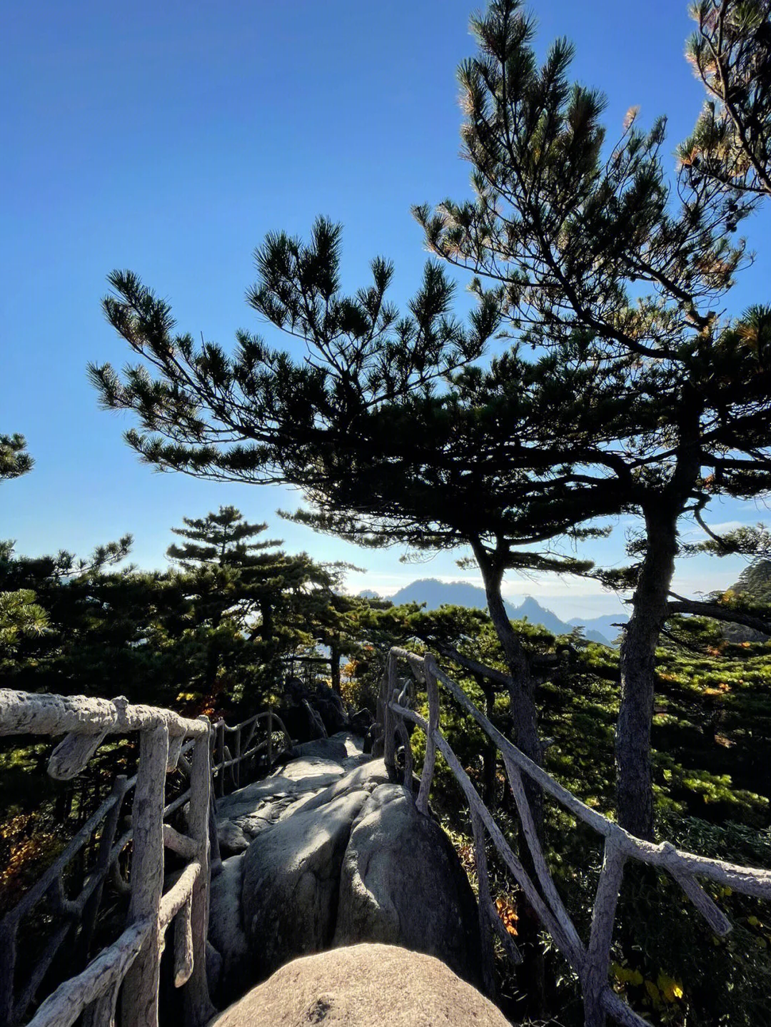 第二天早上九点才起床(睡了个懒觉哈哈)出发开始走西海大峡谷(陡峭但风景很棒)👉坐网红小火车(天气太好没有云海)👉鳌鱼峰👉一线天(没爬)👉百步云梯👉莲花峰(没爬)👉迎客松👉下午1点半从玉屏索道下山