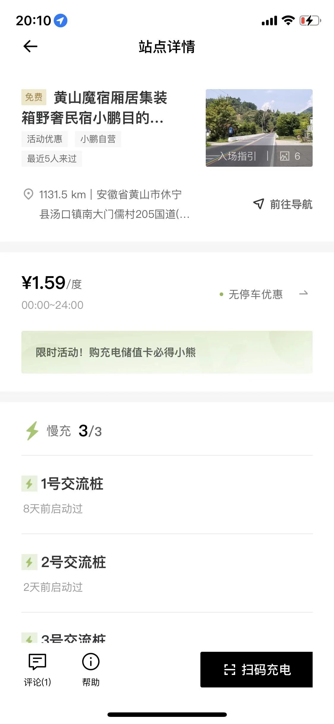 晚上正好去小鹏的目的地充电站补电,就建设在民宿旁边,很方便