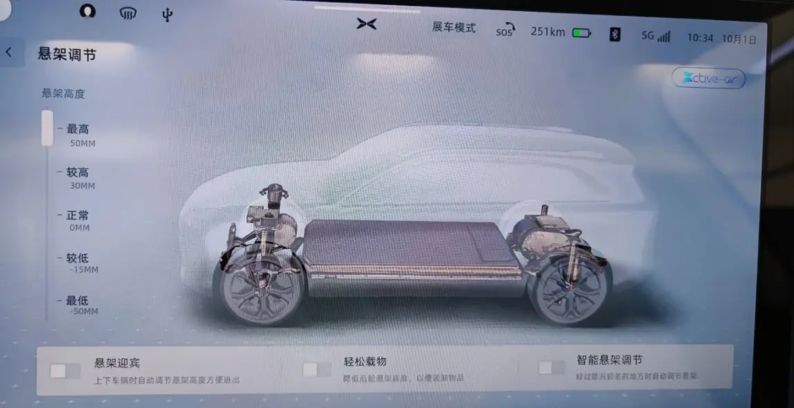 我把模式调到了脱困模式,明显感觉底盘升高了不少,打开底盘高度调节界面,居然还不是最高,索性手动调到了最高
