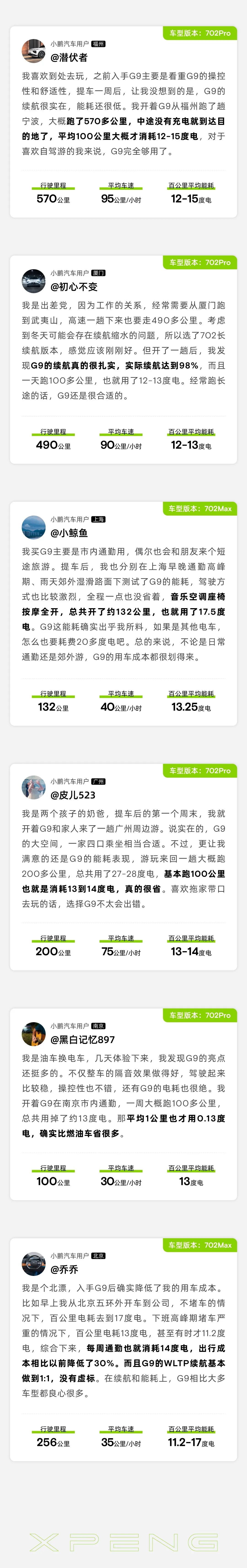 小鹏G9的超长续航能力表现究竟怎么样?一起看看首批车主们怎么说,欢迎大家来评论区晒单,说说你的使用体验吧~