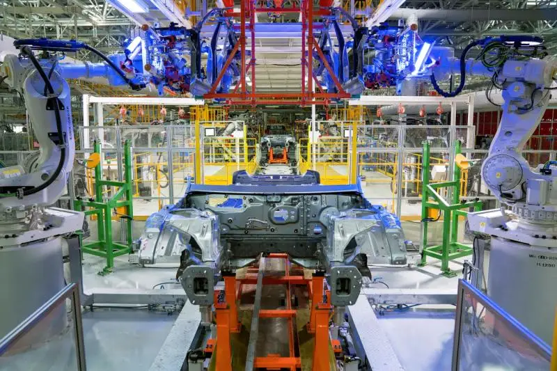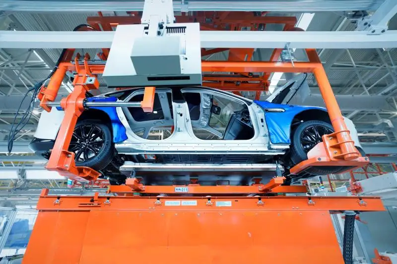 肇庆小鹏智能制造基地拥有冲压、焊装、涂装、总装、Pack五大车间,另外还有一个覆盖高速路、ABS路、涉水路、扭曲路、石板路、自动泊车等18种路面的测试场地。总体规划3000亩,具备不同平台4种车型柔性生产能力,共计设置 264 台智能工业机器人。