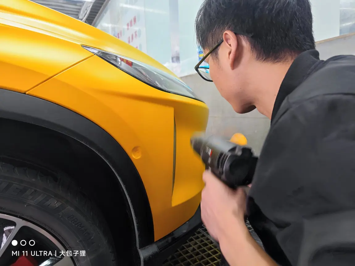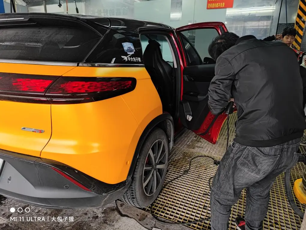 在改色过程中,佑旅优品的师傅技术非常到位,而且态度很不错,和我协商时间的时候,考虑到我想要取车的时间比较紧,就让我送过去以后连夜帮我改色贴膜,第二天又继续干了一天,非常辛苦,而且我不在的时候还能够主动和我在线上交流,并沟通贴膜中的细节,比如在贴门把手的时候,他们先后贴了黄色和黑色两个效果给我看,让我在选择上一目了然,实在是太棒了。