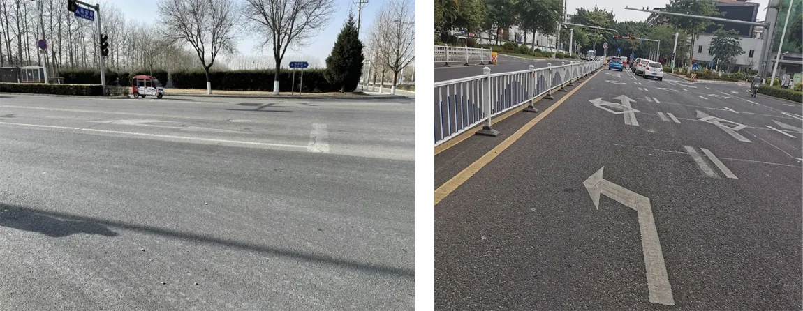 (2)车道线过度磨损或被遮挡、覆盖、消失,新旧标线重叠,因道路施工临时调整或变化迅速(例如,车道分叉、横穿或合并)。
