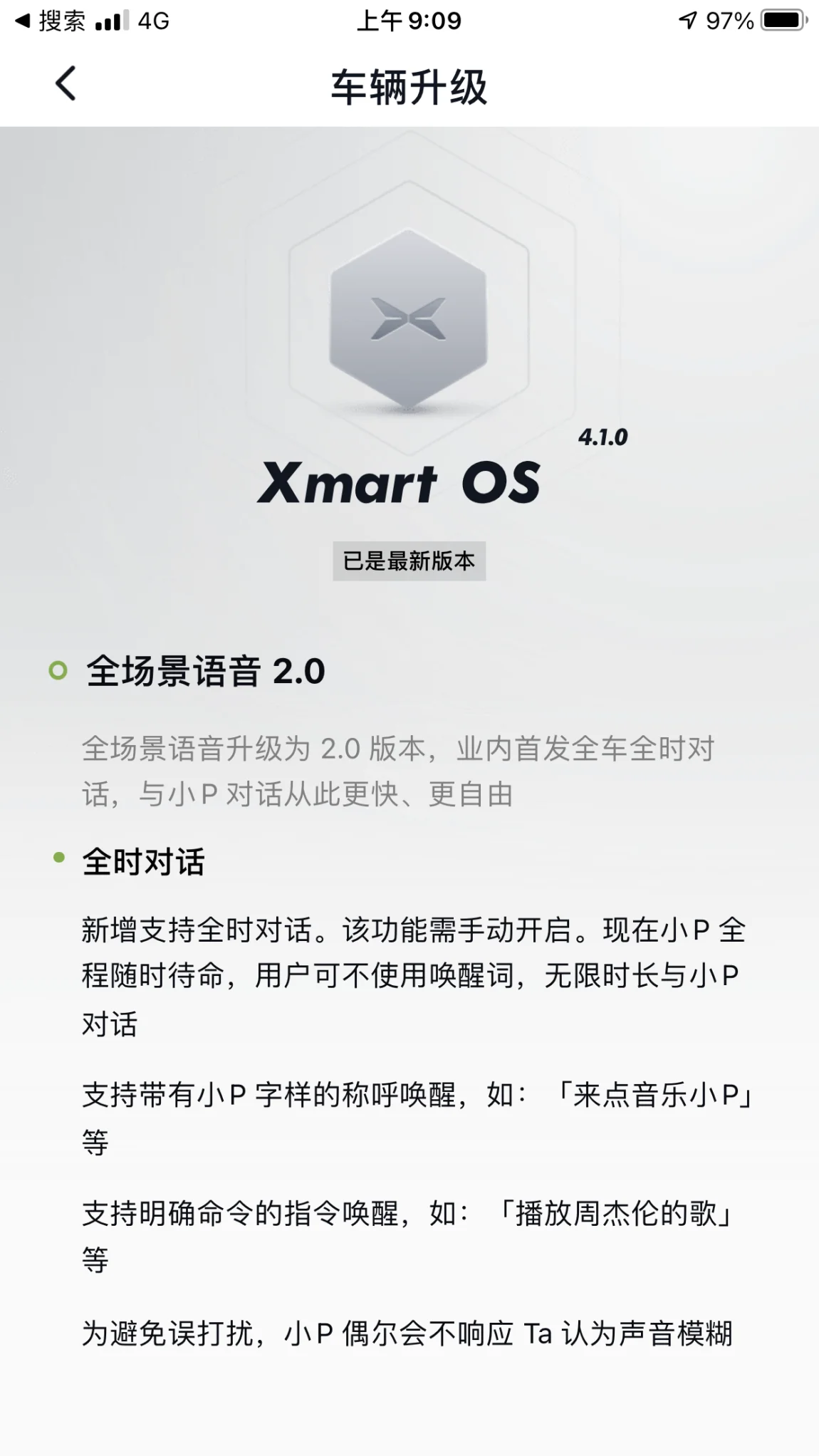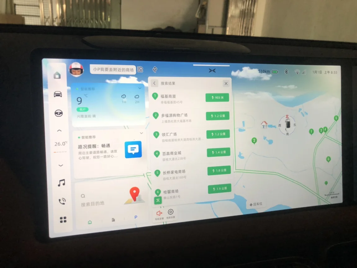 在升级以后,连“你好小p”都不用说了。仅仅在老婆上车的一瞬间来一句:小P舒享模式,我想去购物了,附近有什么商场。仅仅一句,所有的幸福感都来了。