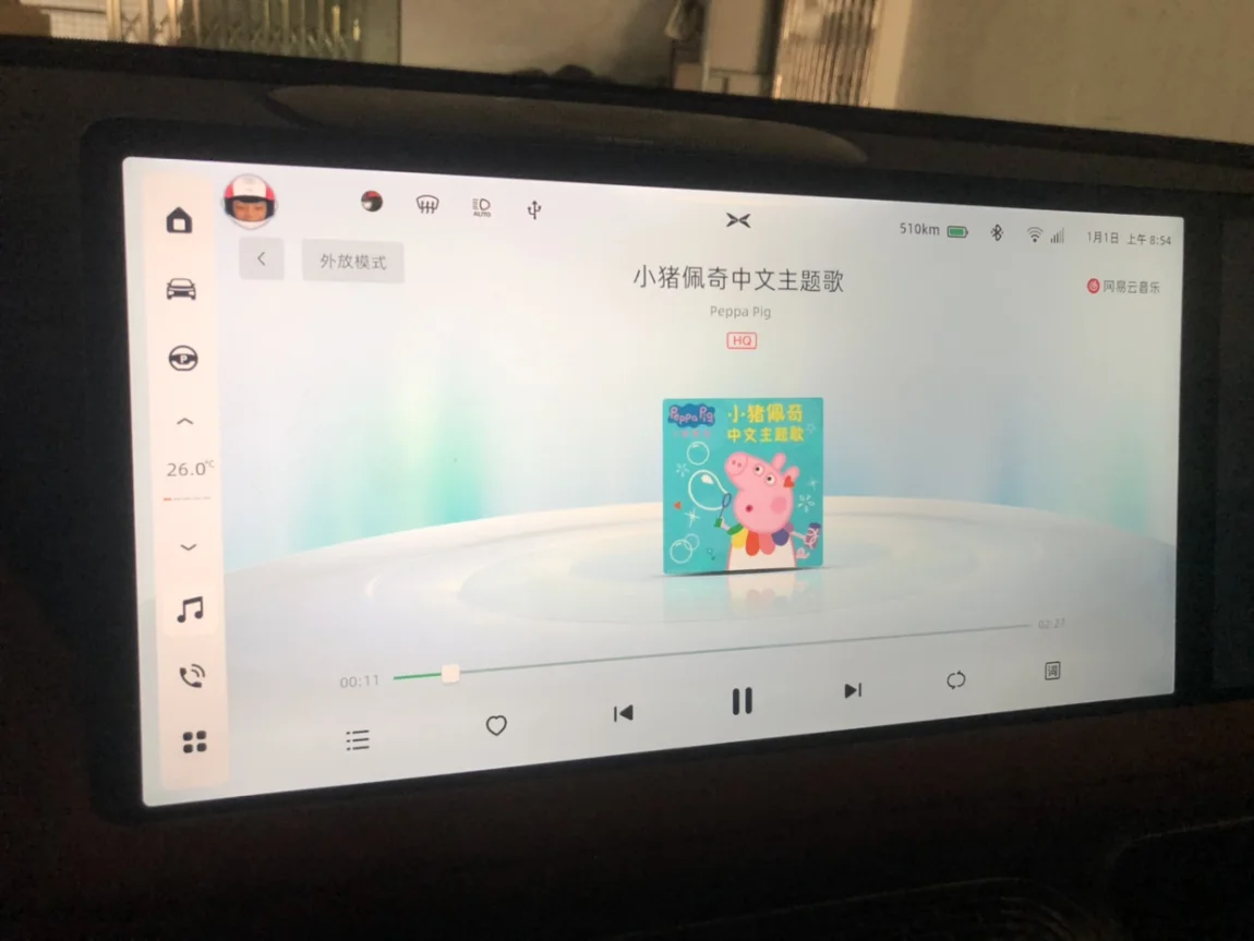 小P直接就切换到小猪佩奇的主题曲。让行车更加安全。