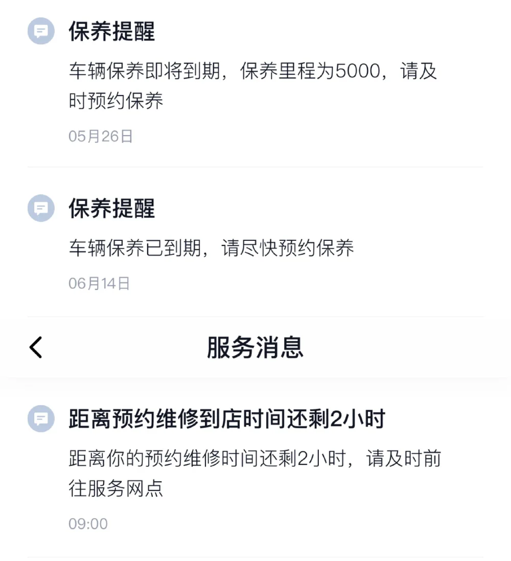 其实5月中旬里程未到5000㎞的时候,APP就已经开始提醒我可以预约保养了!到了临近日期就更加频繁的提醒,车主要想不记得“小鹏有约”,那根本就是不可能的事儿!哈哈哈😁