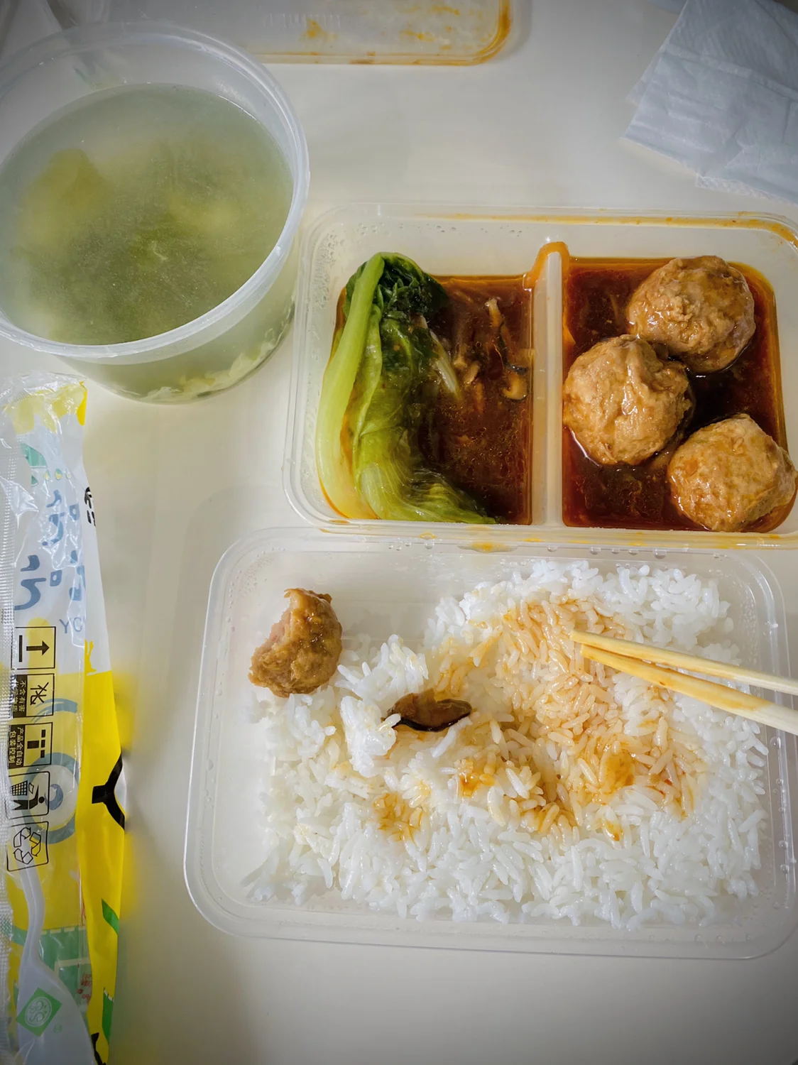 我选这个时段来,有点心机,哈哈哈😁我就是想试探一下服务中心给鹏友们的午餐如何对待。嗯,总体还是不错的!先说安排,这个点到店的鹏友肯定会遇上饭点,所以接待的时候,我的专员黄恒松就已经主动咨询我是否需要用餐,并直接开具好饭票🎫,非常贴心。到了饭点,小姐姐就过来通知可以领餐了,一荤一素一汤一饭,盒饭嘛~卖相不会很好,不过红烧狮子头的口感还是不错,肉质没有特别肥腻,爽口弹牙。哈哈,管饱还是🉑!小姐姐服务态度也非常优秀!