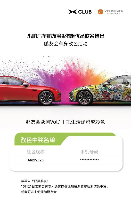 最后感谢小鹏官方和佑旅优品提供的活动,也希望活动多多益善,能让大家更多地体会到定制自己爱车的乐趣~