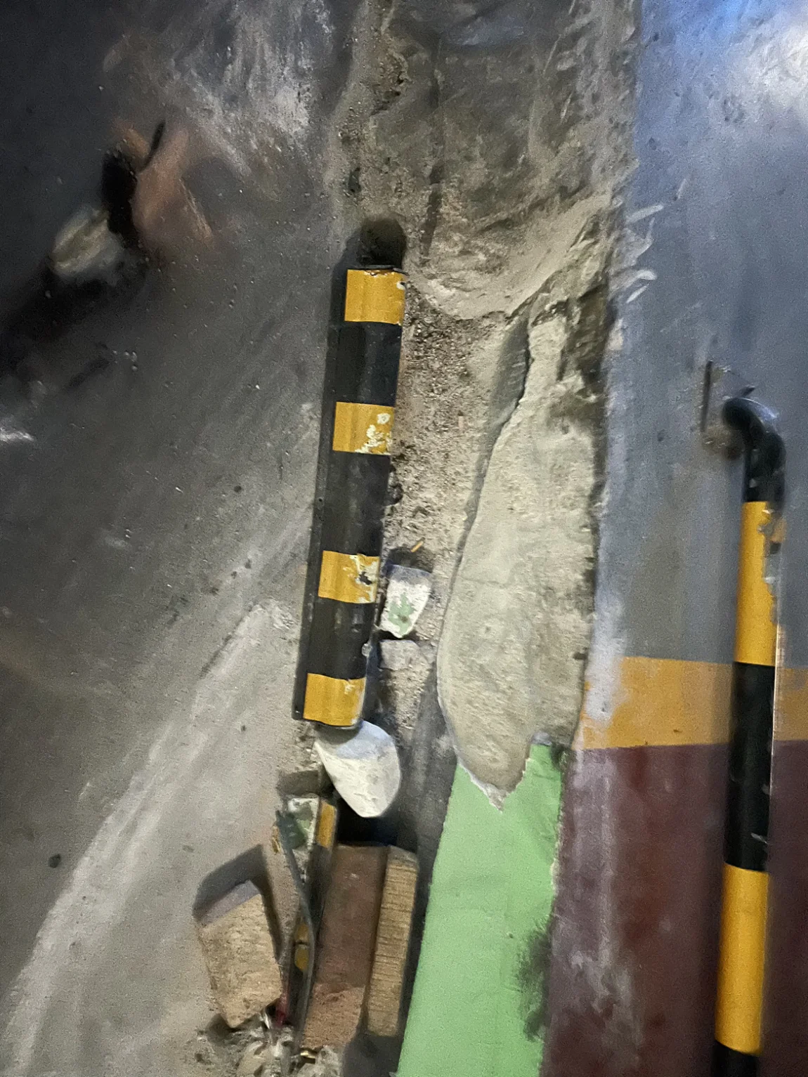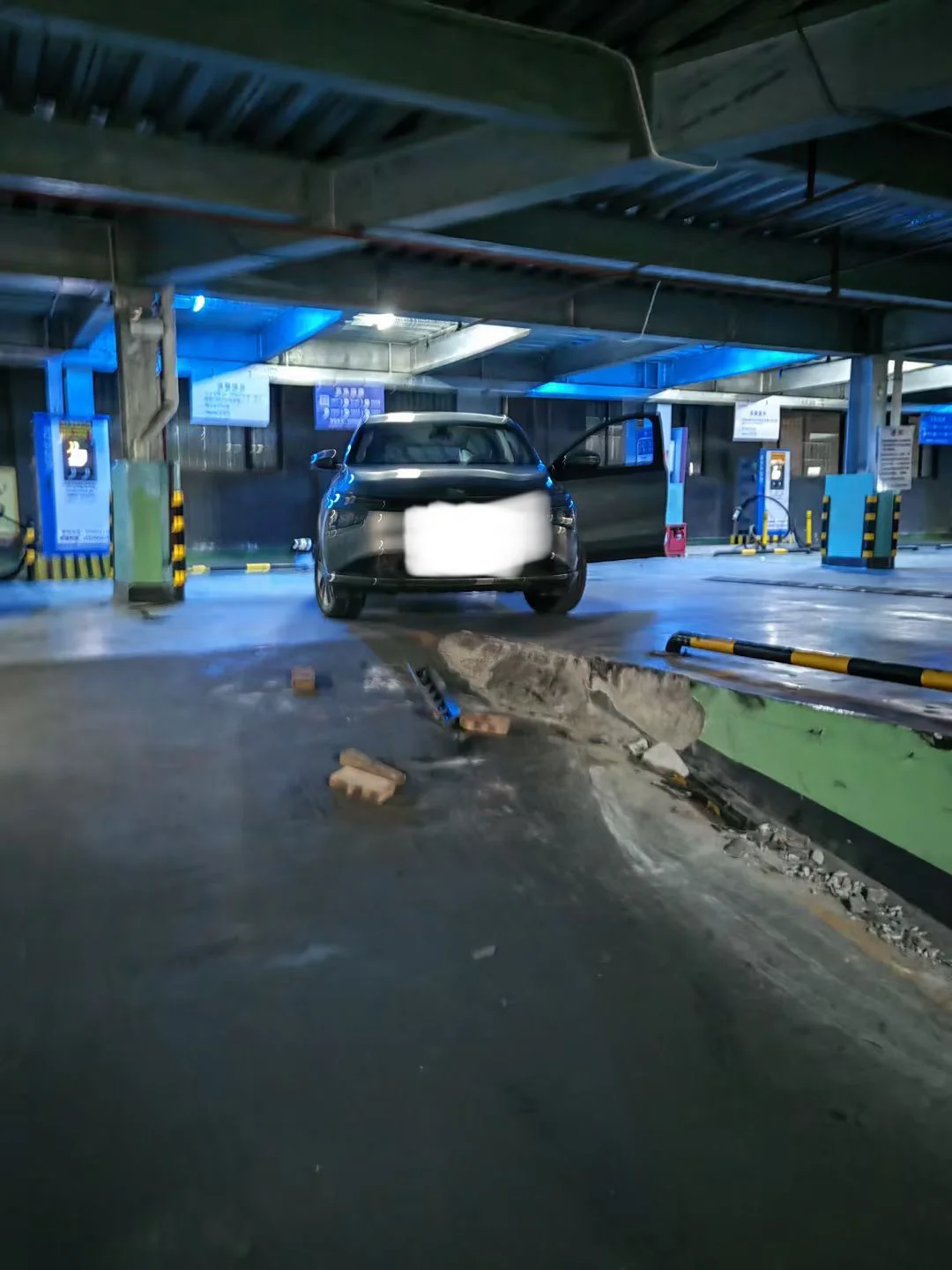 放假了,超充都是离公司比较近,就懒得去了,然后就选了家隔壁这个停车场充电。第一次来,一大早又比较黑,转弯下去的时候没留意有个落差。这个停车场真的太差了,我售后出去的时候都说难开,很多设置不合理。