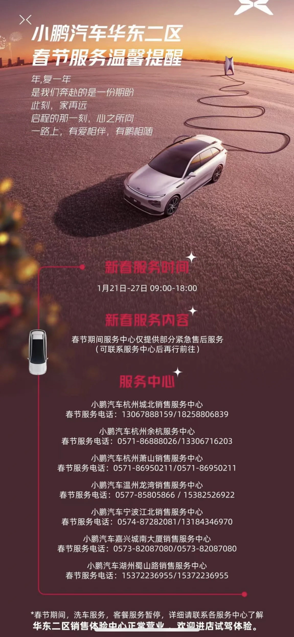 春节期间,多个售后仍然开门,等待需要他们的鹏友过来,方便你我他。以及提供春节免费救援服务,让鹏友出行没有焦虑。服务群里也随时待命,解决了我的一些疑问。
