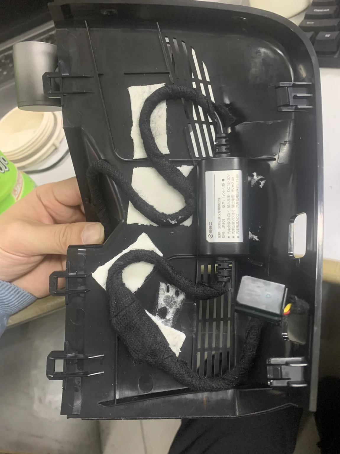 这里特别感谢我同事的撬棒,没这东西,那个盖子是真不好打开,也正因为他买了盯盯拍,安装时我才发现我们胖虎乞丐版后视镜后面里面基本是空的,我才有了把降压线藏里头的想法。