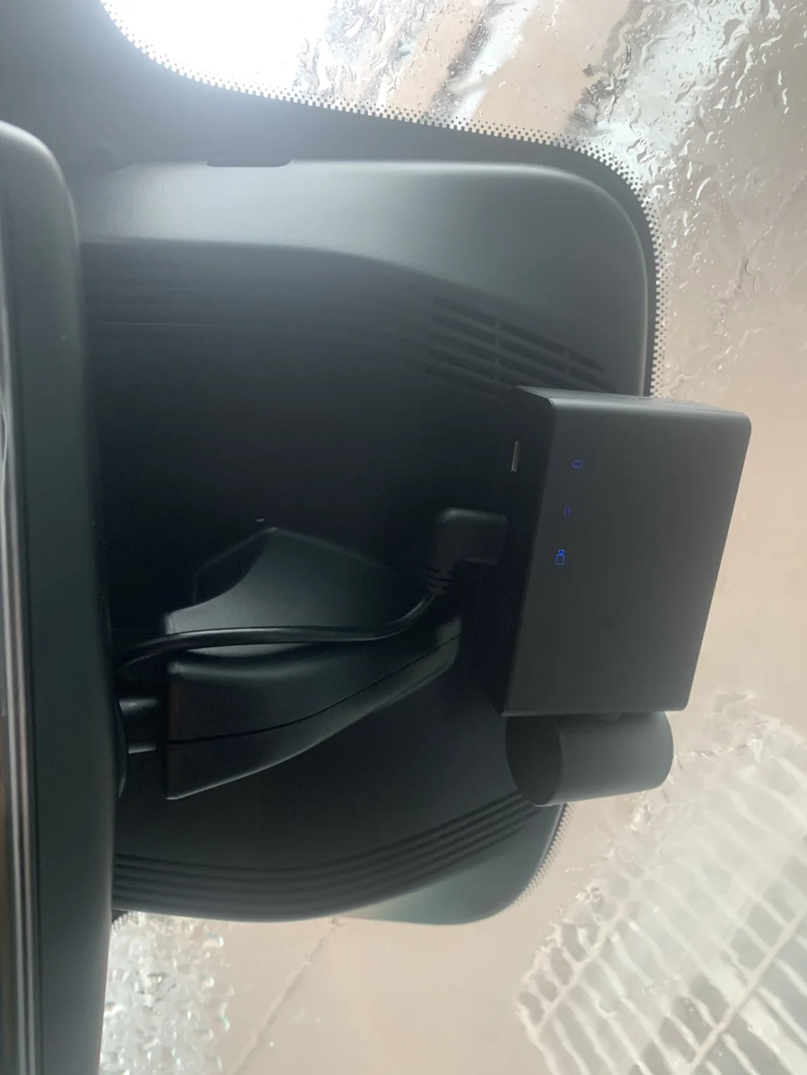 这里type c的线正好可以从后视镜这穿出,比较完美地把线藏了起来。经过几个同事的群策群力,才安装上,效果如下: