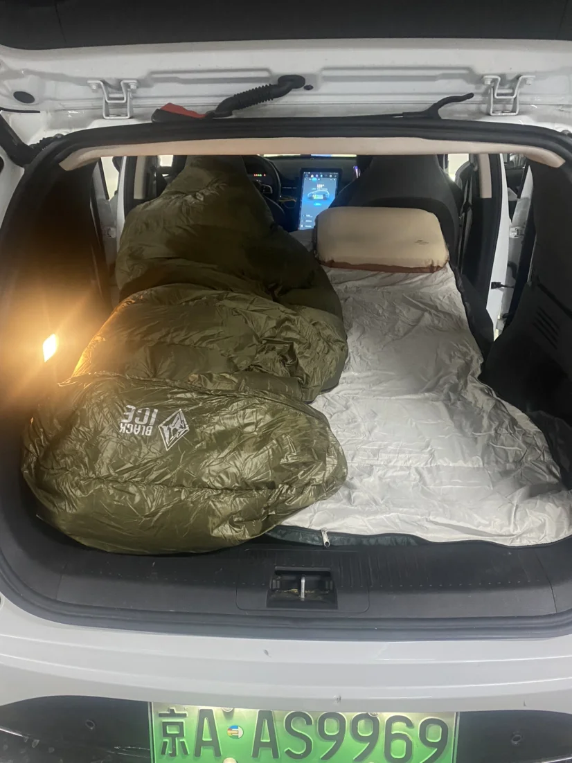 G3i后座放平变床这个事,我185身高,前排往前挪到头,正好可以躺平,不建议买太厚的充气床垫,高度不够的话很压抑,上下“床”也很困难,别问我怎么知道的😭
