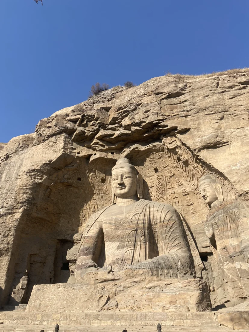 图1:云冈石窟最出名,但不是最大的露天大佛,很震撼,感受到了我们民族先辈的伟大智慧和技艺。据说佛的眼睛丢了,这一对是后来装上去的(我女朋友是学艺术的,全程每一个窟都进行了详细的讲解,省了讲解员的钱了,哈哈哈)