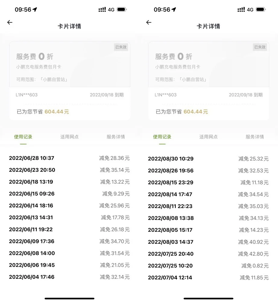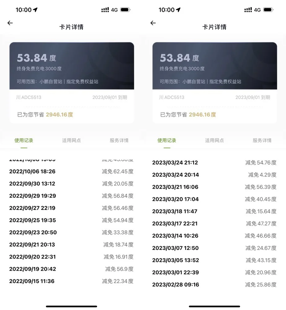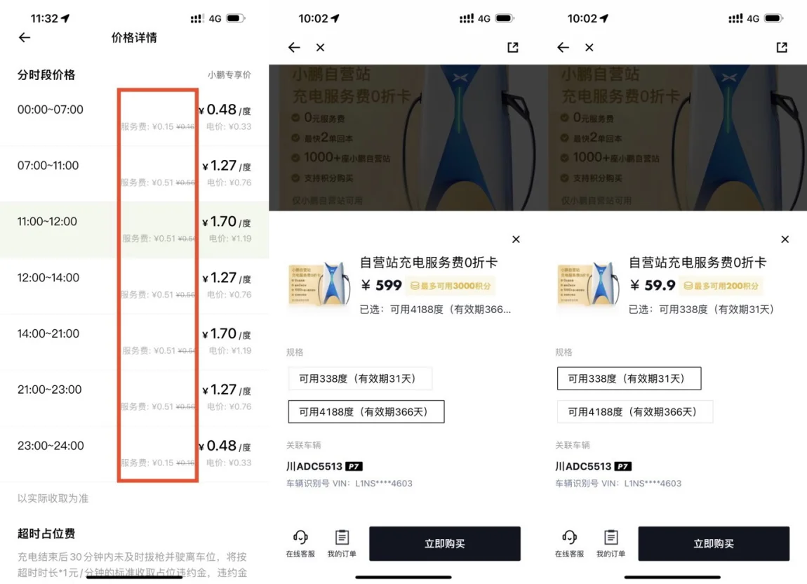 强烈推荐没有充电权益的鹏友购买这个权益,说明一下,这个服务不是充电完全免费,而是减免我们去小鹏充电站充电的服务费(下图左边红线框内的费用减免)