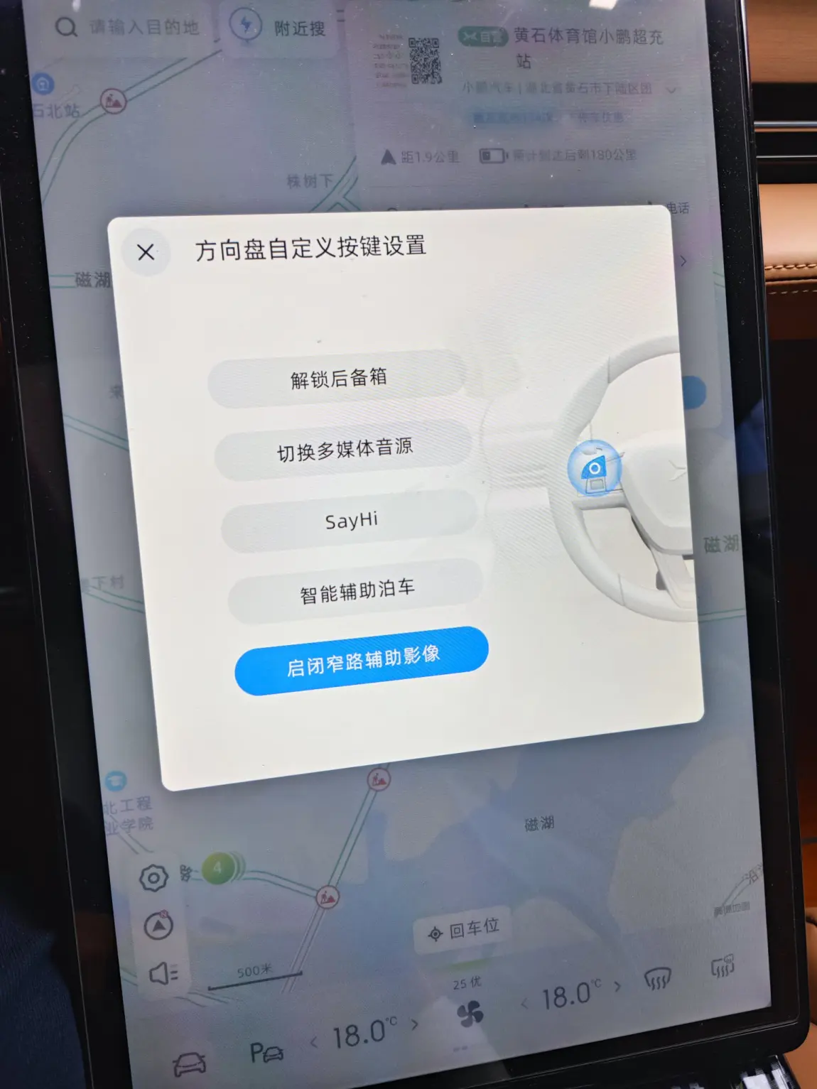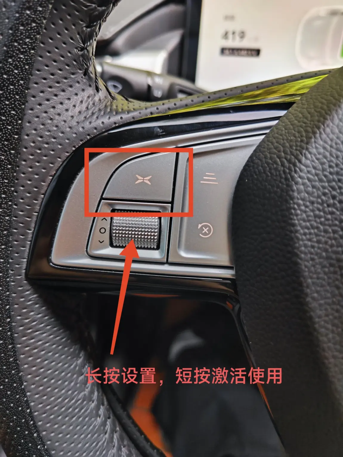 可以长按方向盘上左侧的小鹏“X”logo来设置短按打开全景影像。画重点🍓🍓🍓这个是我认为本次更新最实用的一项升级了。这个功能最实用的是在通过狭窄通道或者错车困难时候一键打开车身影像,妈妈再也不用担心我擦伤小P了!😀😀😀