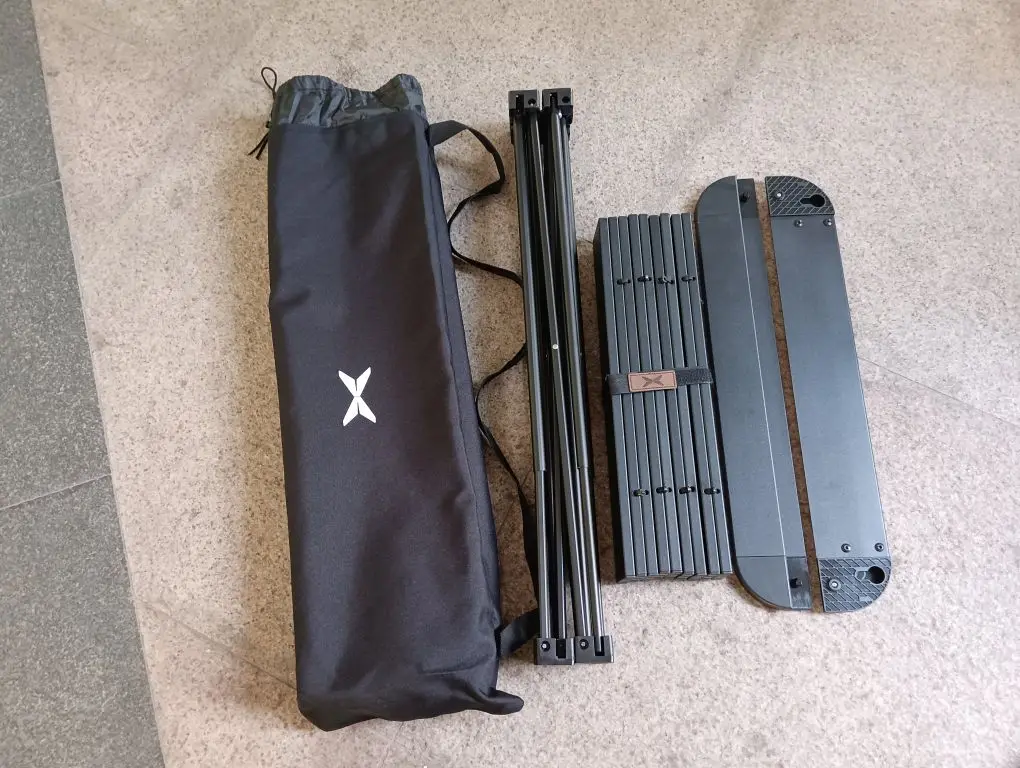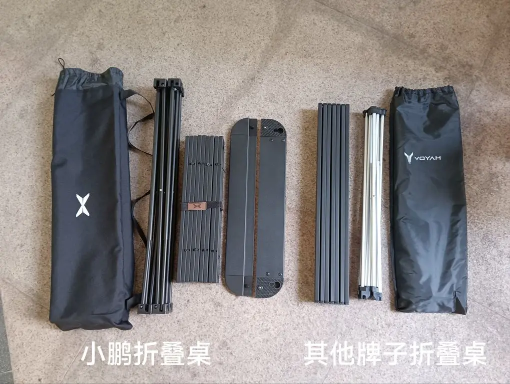 🌻打开袋子,我们拿出折叠桌,里面分为三部分:桌子支架、折叠桌面、边角桌板。而另一品牌则是桌子支架和折叠桌面。简单对比,小鹏的支架更长和粗壮些,折叠桌面部分则短一些,但有带子绑定而不会松散。