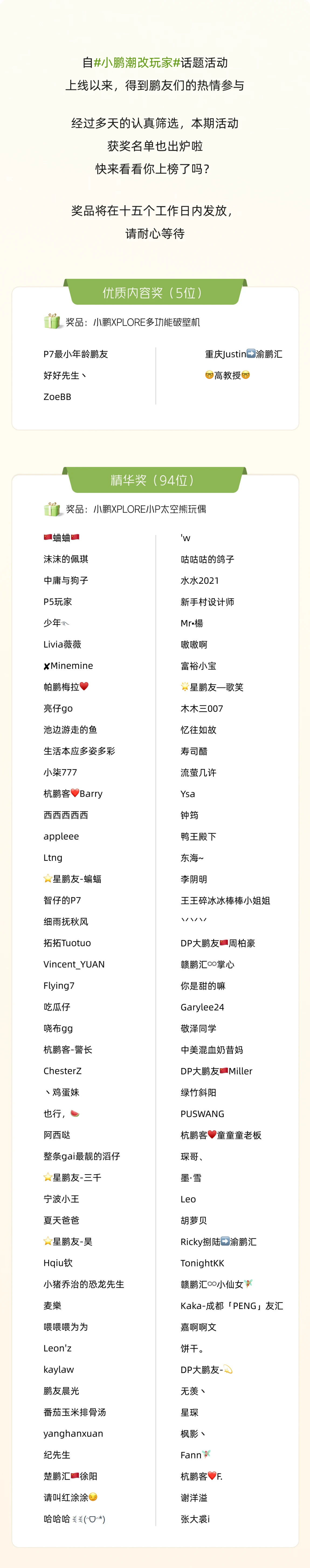 1.优质内容奖|小鹏XPLORE多功能破壁机(5位)