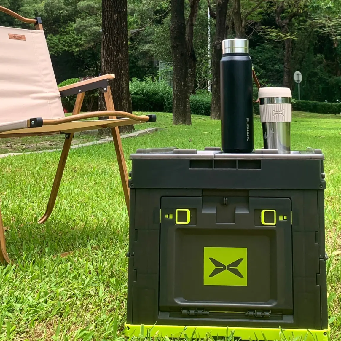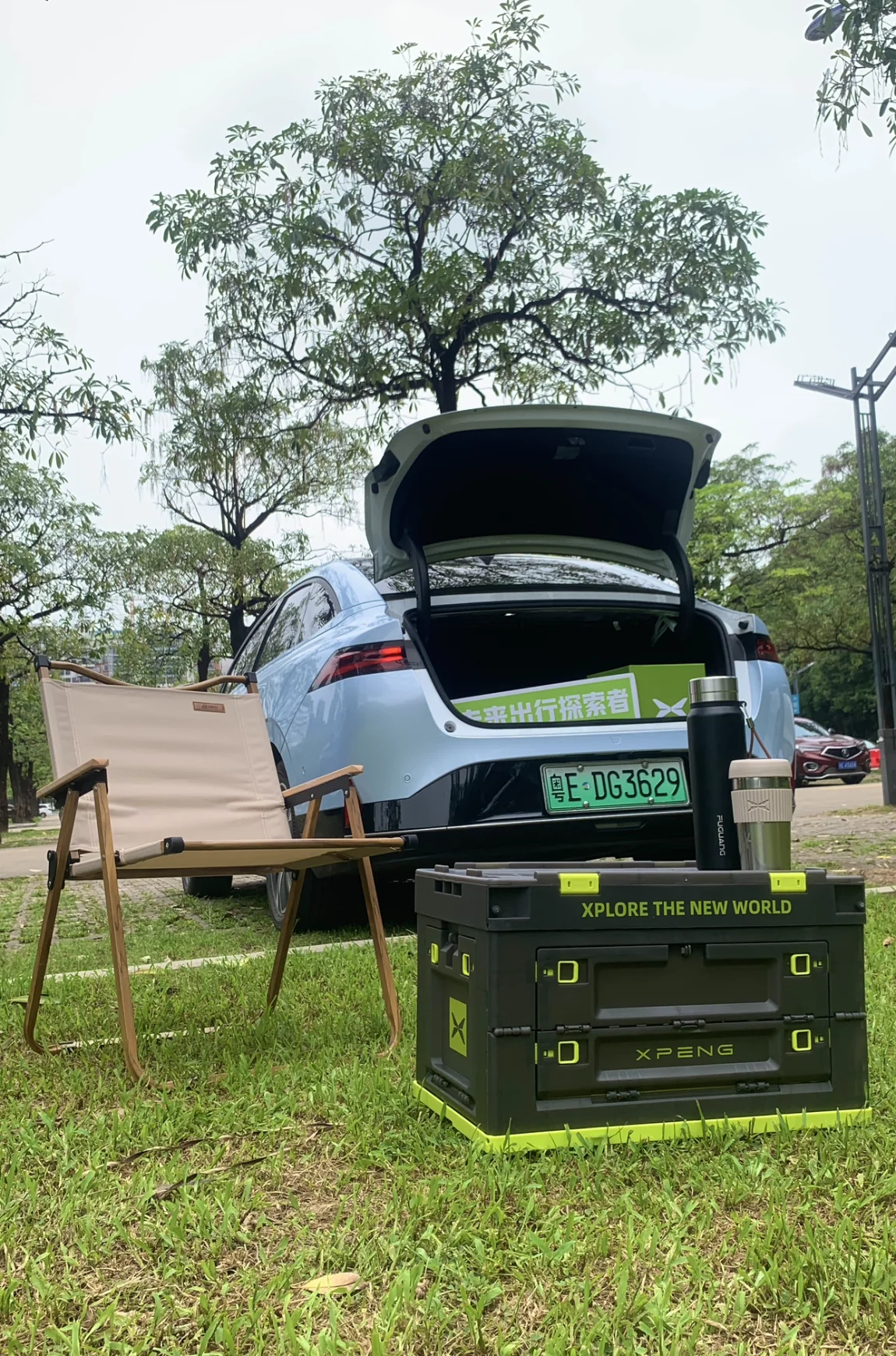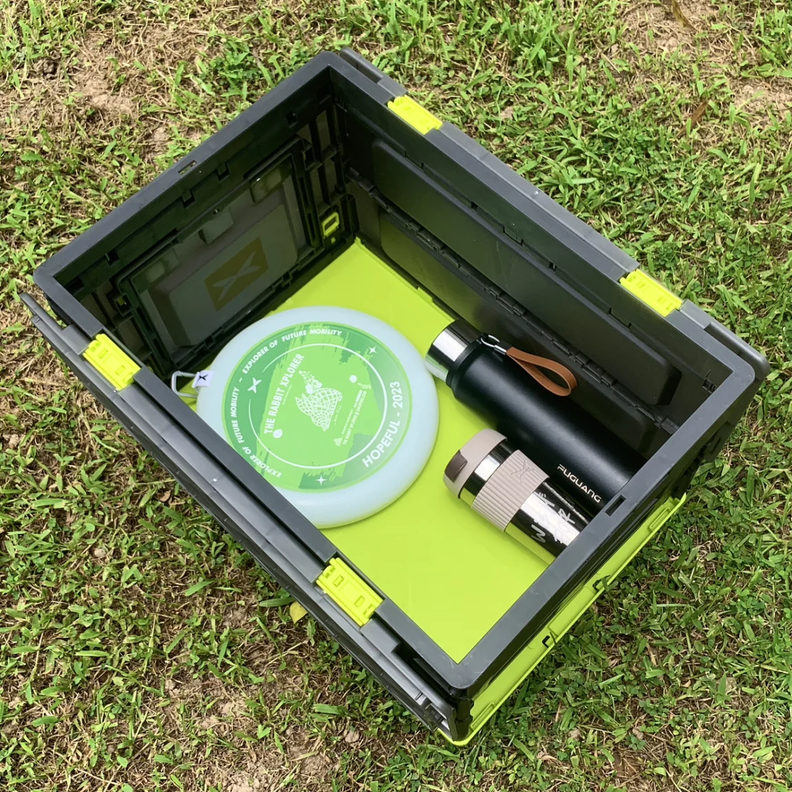 把箱子掀开,可以放下露营使用的飞盘和水杯,还是挺能装的嘛😁