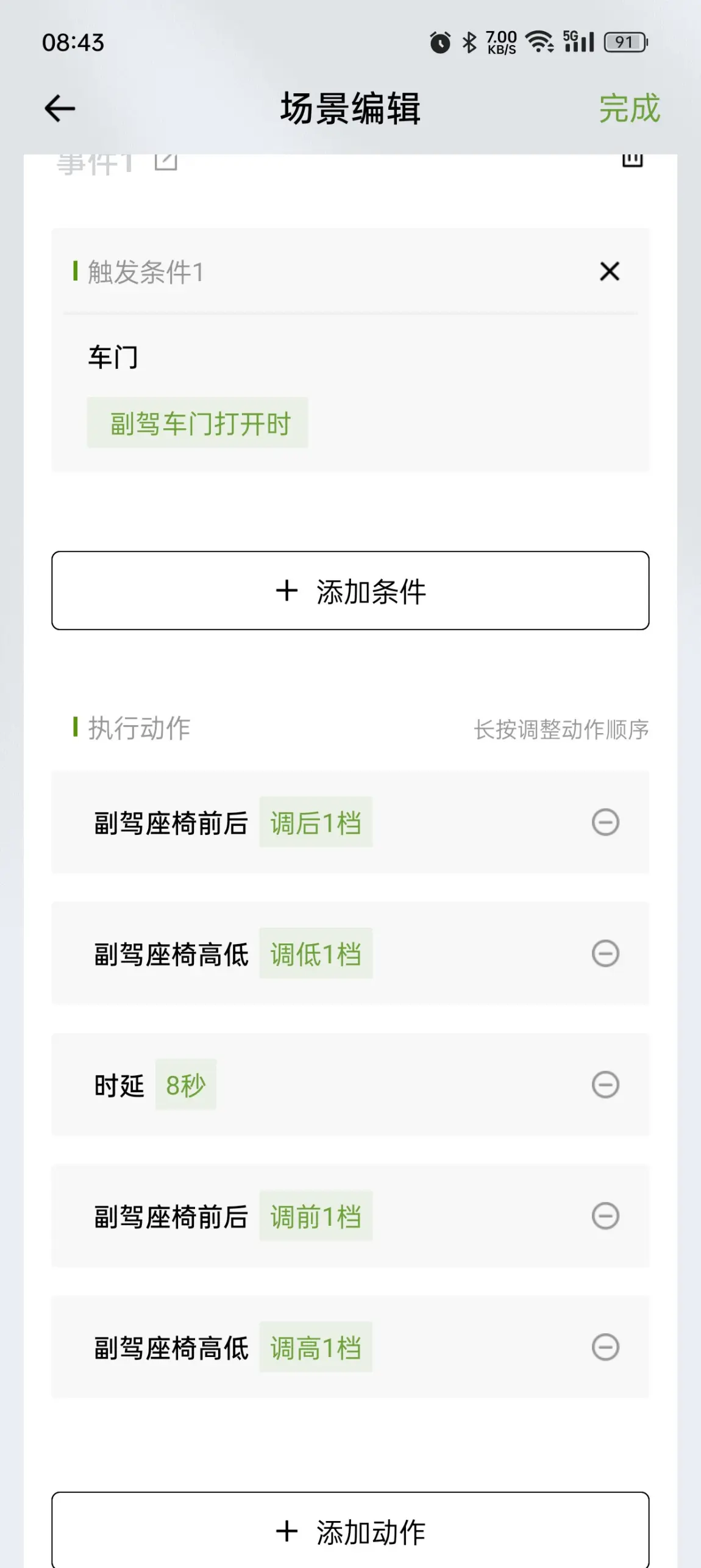 P7新版软件更新后,优化了私人定制的体验,可以为副驾做迎宾模式了,不过该模式还是有限制,就是事件里无法检测副驾关门,只能做时间延时来达到迎宾的效果。