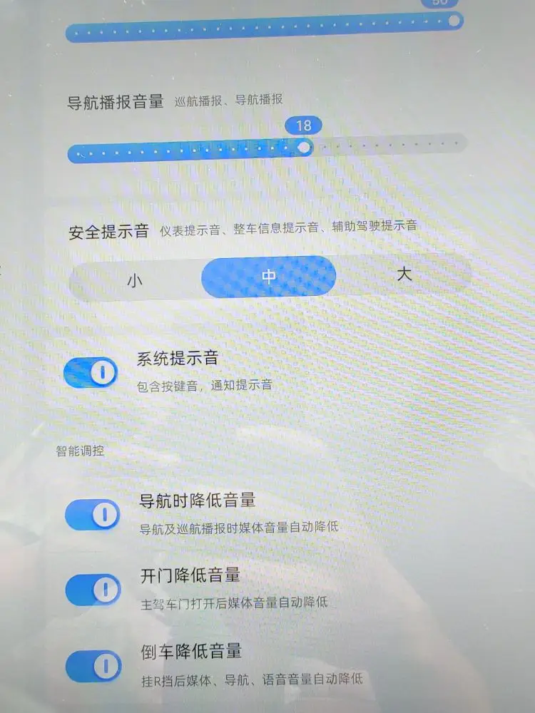 第三,新增导航时媒体降音开关,这个对于音乐爱好者的我真是大大福音,减少导航播报影响听歌体验!同时开门和倒车可以根据个人需求开关降低音量,做的很细。