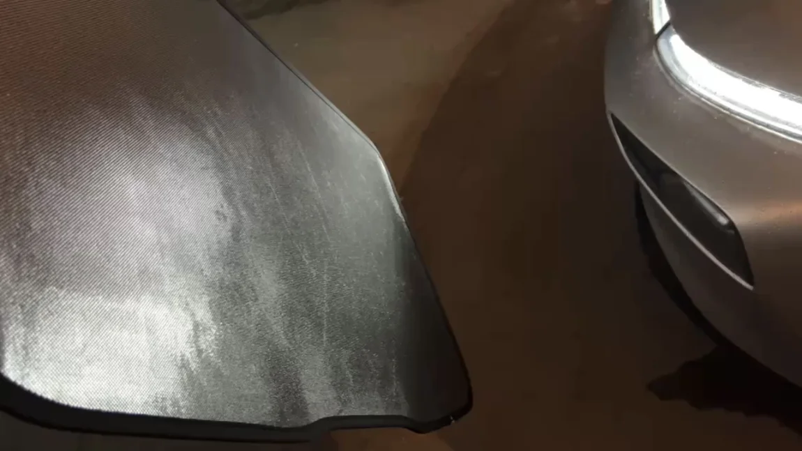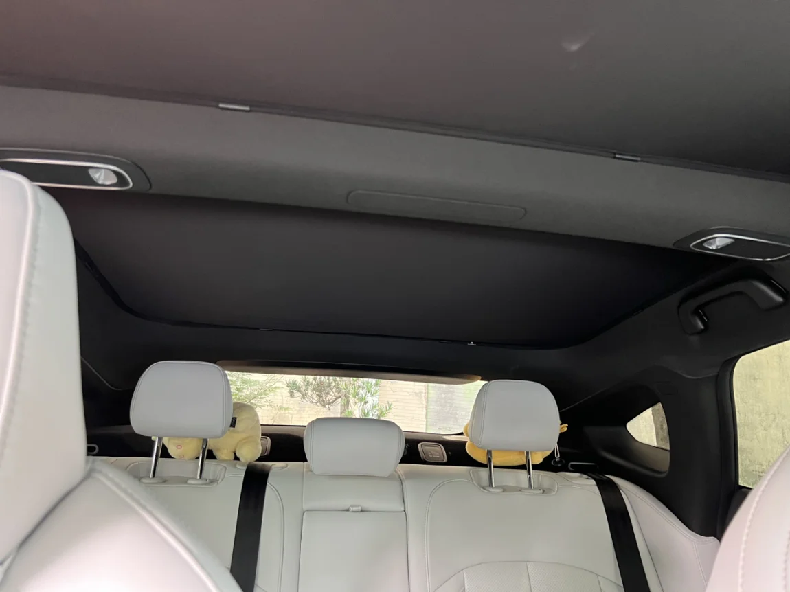 虽然小P的大天幕很敞亮,可以抬头看风景,而且可以隔绝99%的紫外线和红外线,但经不住天幕本身会被晒烫啊,头顶悬了一个超大的红外线热源,空调怎么吹都是满头大汗。要颜值还是要凉爽,最终我还是妥协了,买了二合一冰丝遮阳帘,反面是银点反射层,PDD入手70左右。