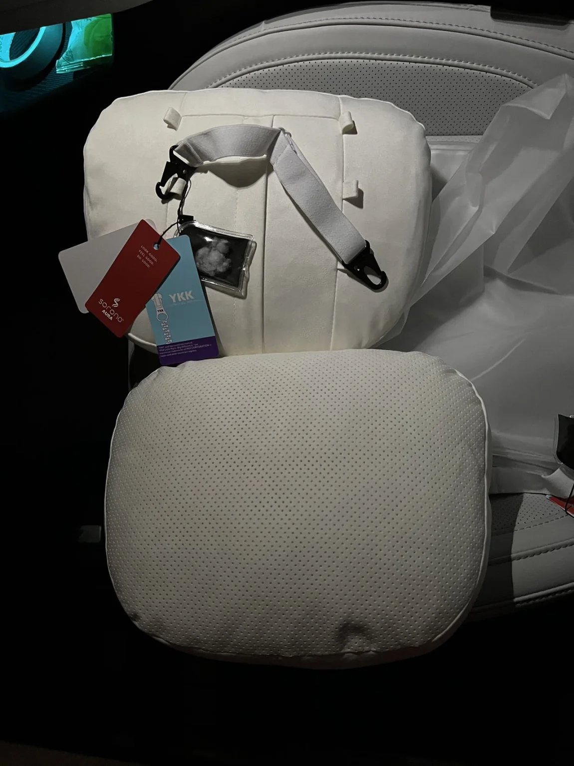 小P的冥想空间在小憩的时候真是一绝,听着轻音乐,闻着香氛的气息,但是……脖子后面空空荡荡的,我只能斜着躺,把头枕在座椅肩部的位置,所以一对舒适的头枕是必须的。气宇灰的内饰太漂亮了,所以头枕的颜色也必须匹配呀,刷了一圈PDD,都没看到合适的,要么米白要么浅灰,都不好看。