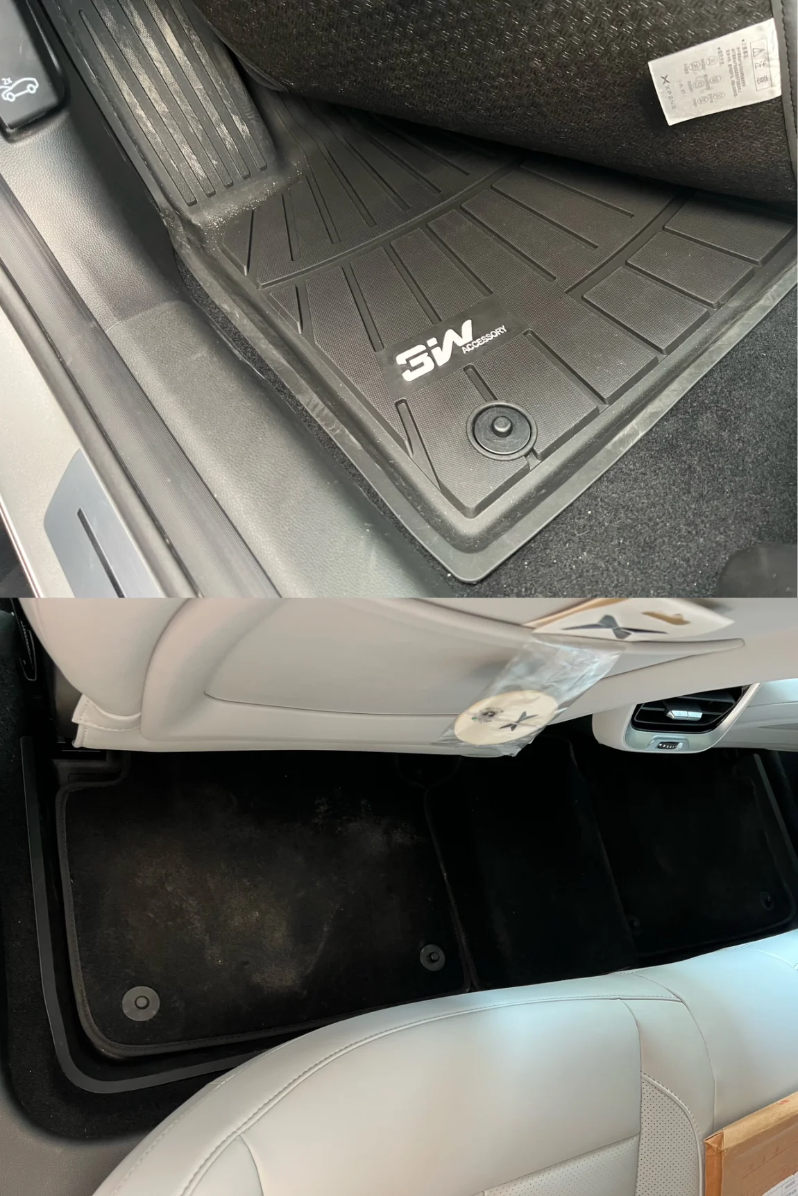 提车时送的簇绒脚垫覆盖范围太小了,感觉也不防水,本来计划上全包脚垫的,结果便宜的太丑,好看的太贵,然后就计划买TPE脚垫,PDD从300多的一路看到188,后来一寻思,这东西要用好多年呢,就买好点的吧,于是就选了3W的TPE脚垫。本来计划买双层的,但想想看原来的脚垫不就浪费了?于是买了单层+卡口+簇绒脚垫,改装成了双层的。咸鱼单层520入手,很便宜。