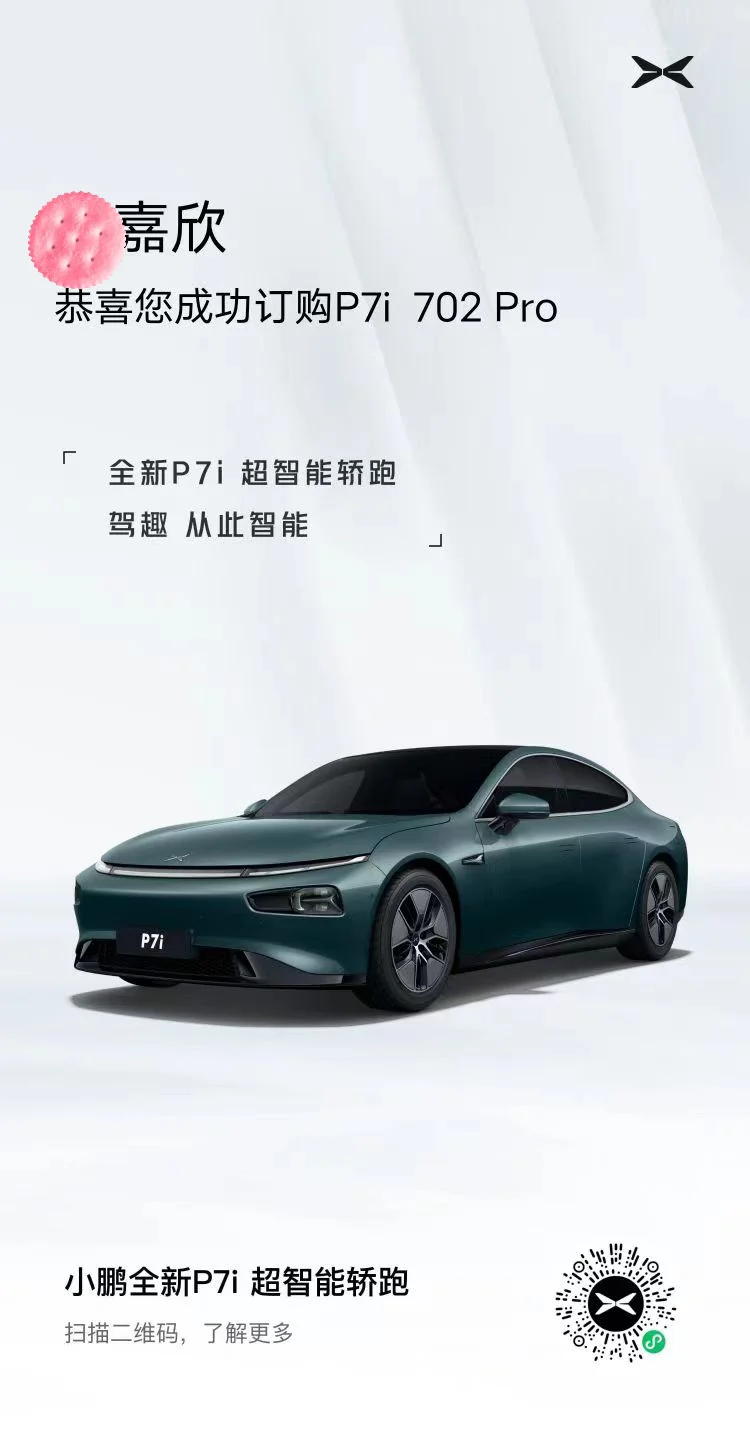 蜜月回来后我们就做了很多的功课,市面上全电轿车都看了一遍,内心大概有了一些了解,看到新款P7i上市,最后还是决定先看P7i。谁知道去看完试驾完,立马就下定了!!紧接着就是漫长的等待。不到八周我的车到了,立马跑去提车,真的超级开心!!