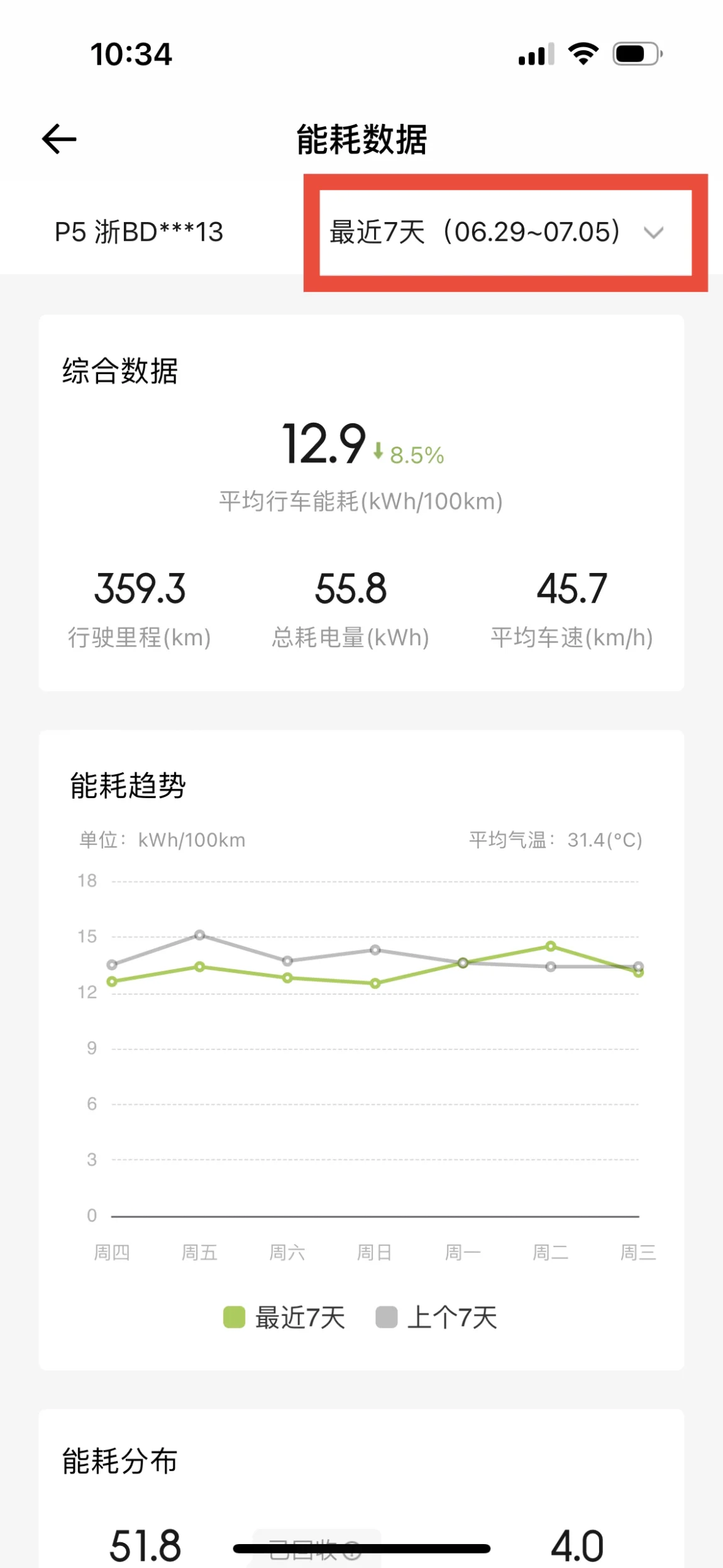 ➡️路径:APP--小鹏--下拉找到能耗数据--点击进入--在左上角最近七天选择时间段,大概聊聊我对这项功能的看法