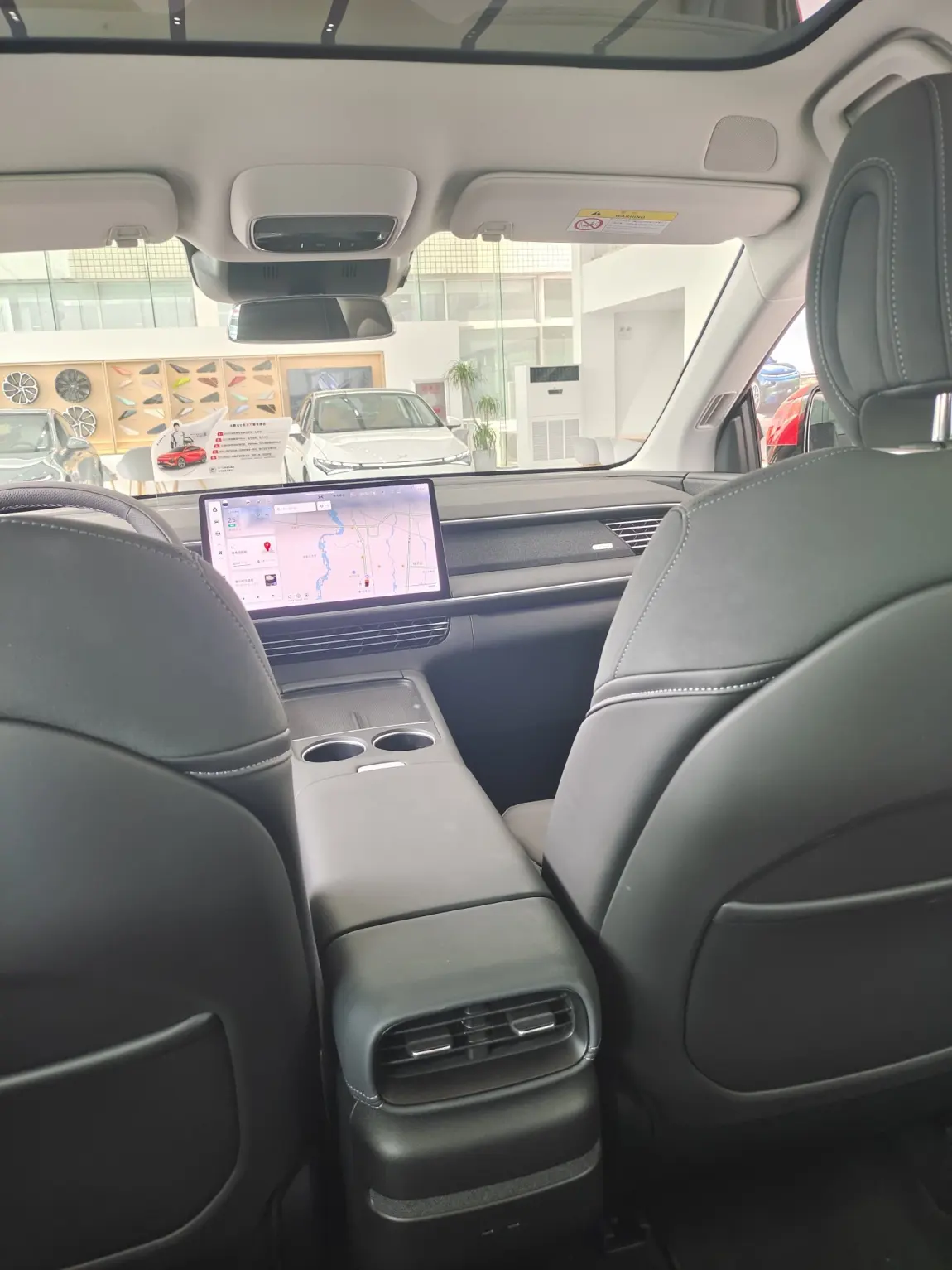 一上车,是销售开车,我就坐到后排,因为方便拍照,哈哈。今天带着任务来的啊。再说一次,这个座椅真舒服,比我那P7强多了,老韭菜伤心啊!长时间也不会不舒服,而且还支持角度调节,实在是顶呱呱啊。