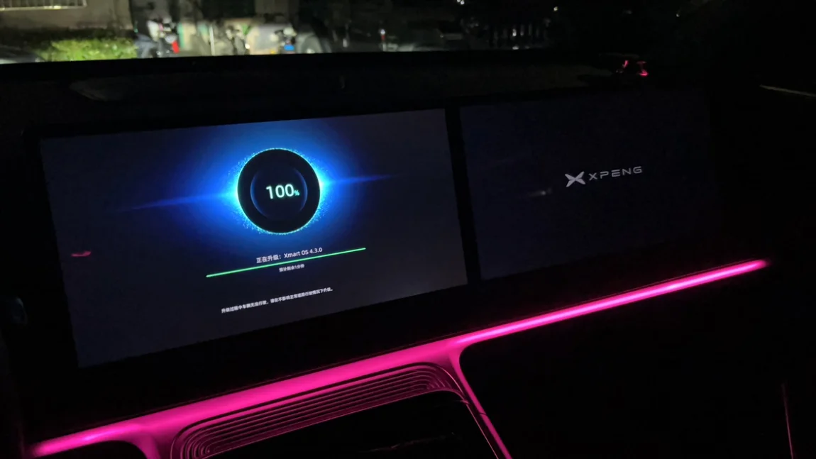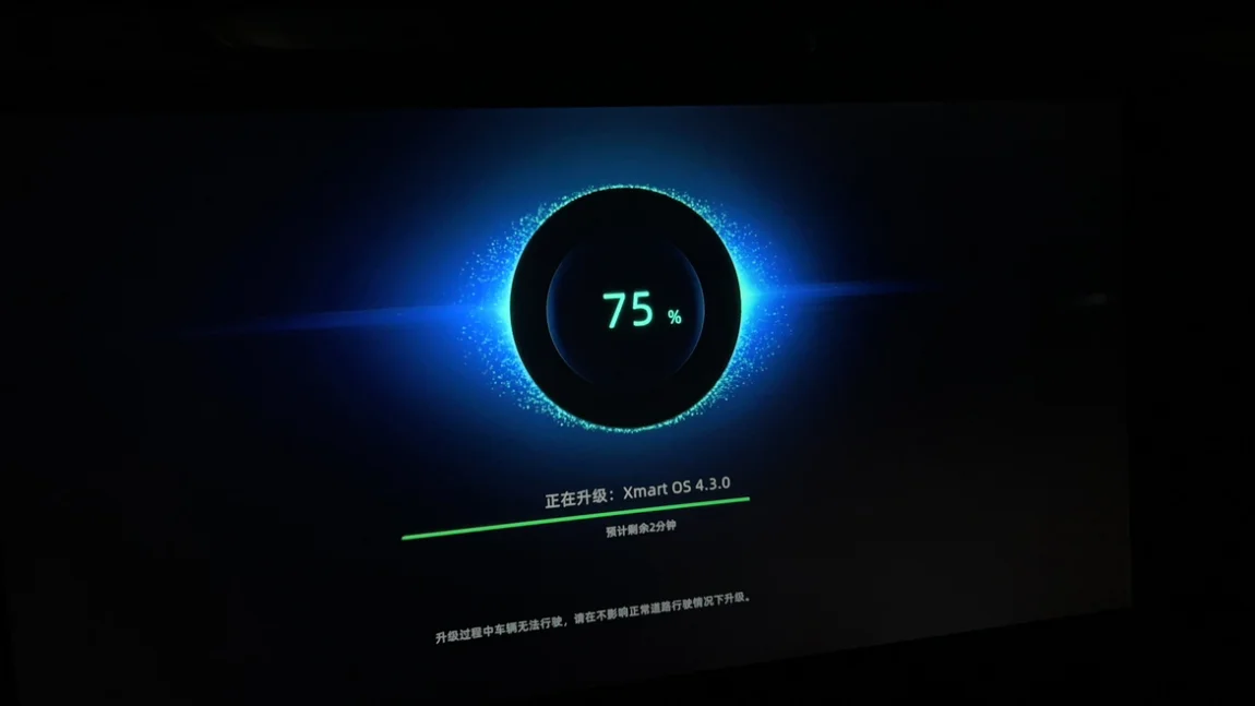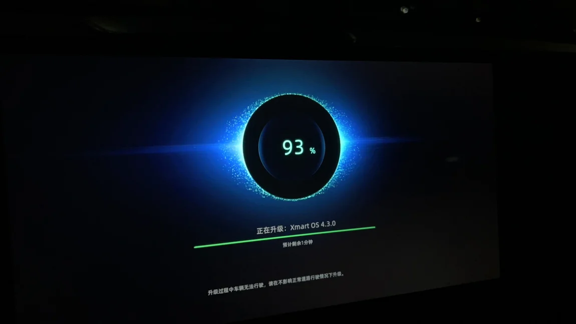 OTA推送的当晚,刚好在小鹏充电站充电,群里消息发来了,说更新了,立马点开看,咦,没有,说实话有点失望,可能没到我这一批车主吧,然后就拔枪开车回家了,结果在半路上瞅了一眼中控导航,大大的OTA标志,直接靠边停车开始升级,哈哈,4.3是购车以来第一次OTA升级,有点懵,充电那会儿估计在下载安装包了,下载完就推送了,升级的过程发给大家看看吧