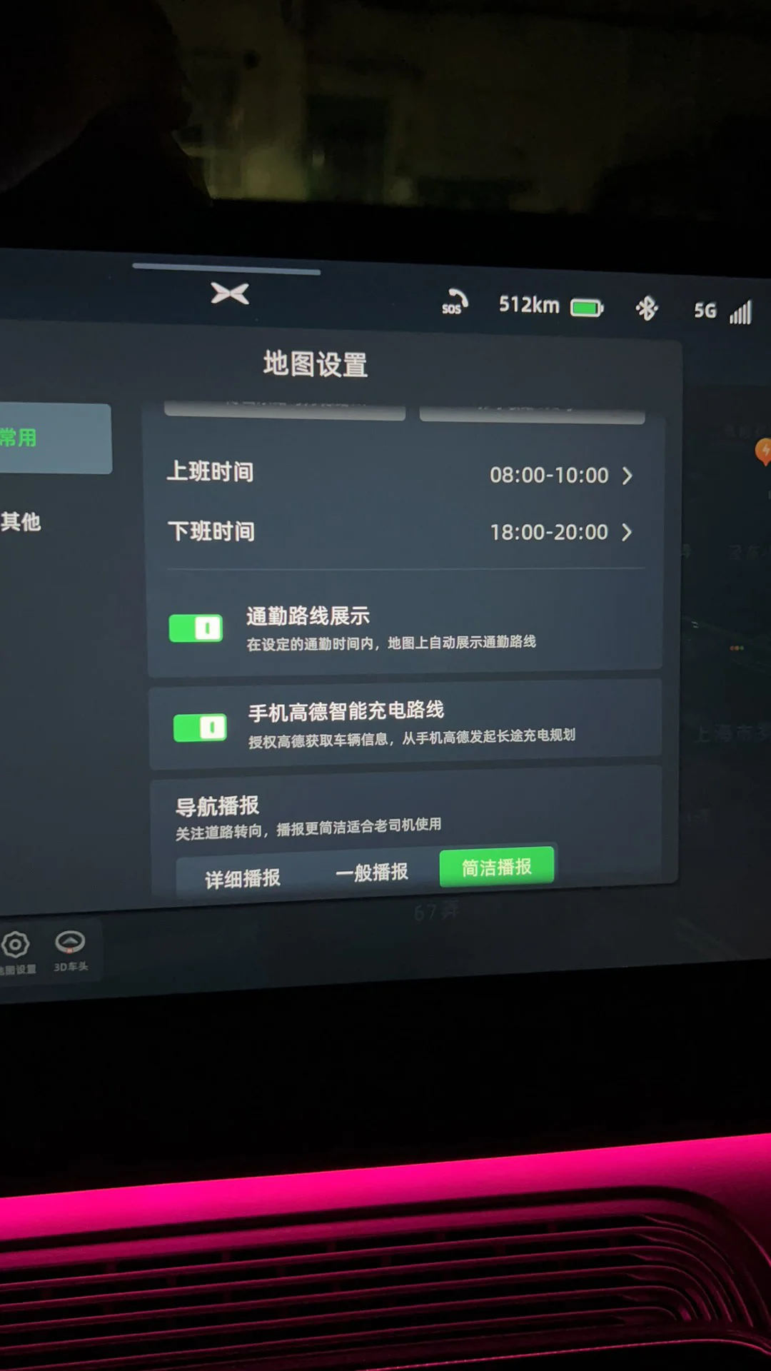 升级完之后就开始捣鼓起来了,第一个看到的就是这个功能,设置上下班时间,然后这个时间范围内上车就自动导航,挺好的,对于每天固定路线的人来说,简直完美。