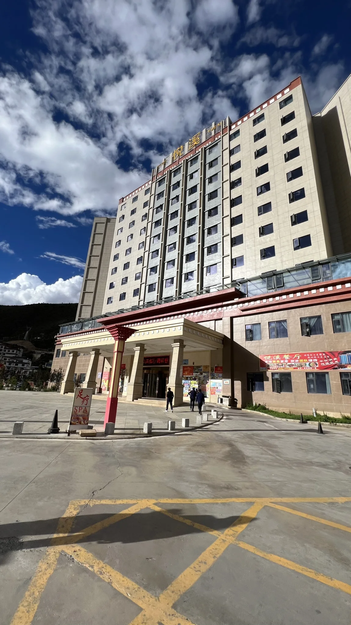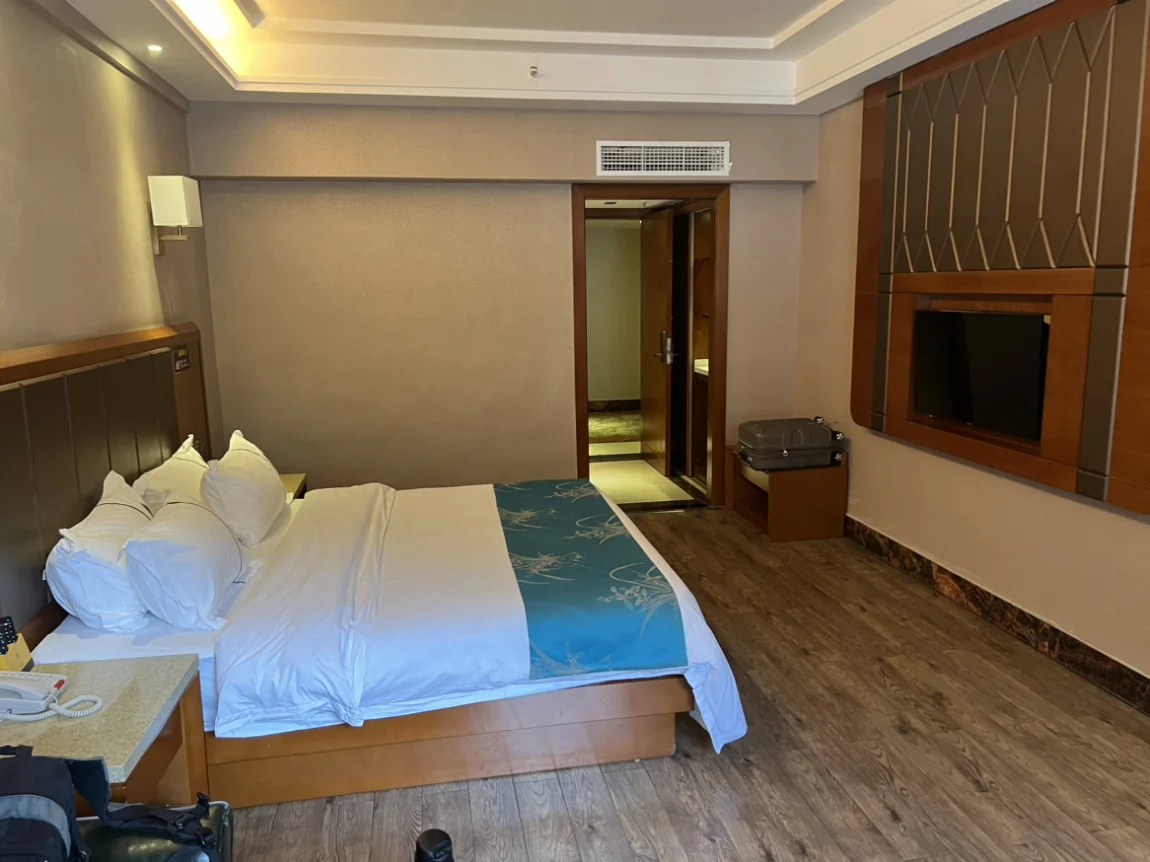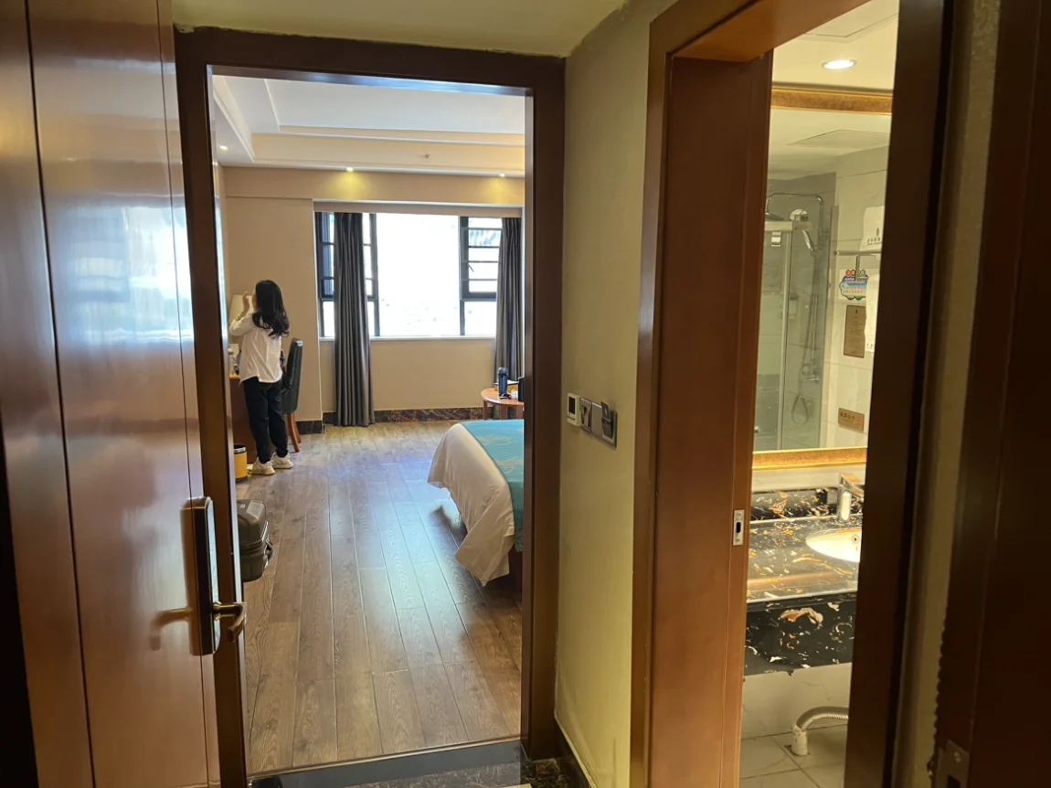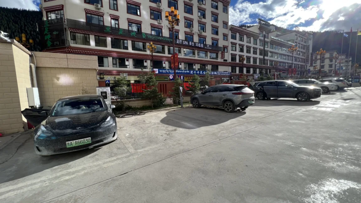 一路下山,电量越来越多,尽管路上堵车几个小时,一直开空调,没有一点用电焦虑。到达左贡最高级的酒店,悦溪度假酒店,也是小鹏九州可往的合作酒店。本来酒店爆满,我说我们是小鹏电车,九州会员,经过半个小时的等待才给我们调出两间房子,价格美丽,环境怡人,装潢高大上,在左贡的确最好。