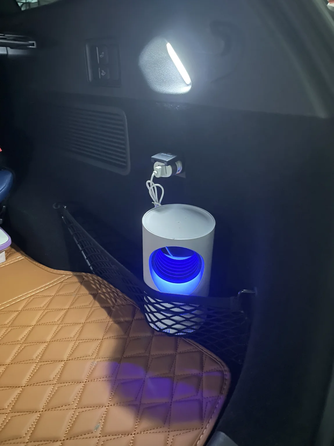 强烈推荐车内一定要放个吸蚊灯,经常会飞些蚊子进来,每天晚上停车的时候可以远程开启后排12V电源打开1个小时,车内的蚊子基本都能飞进去挂掉。非常好用,每天中午睡觉就不担心有蚊子了。