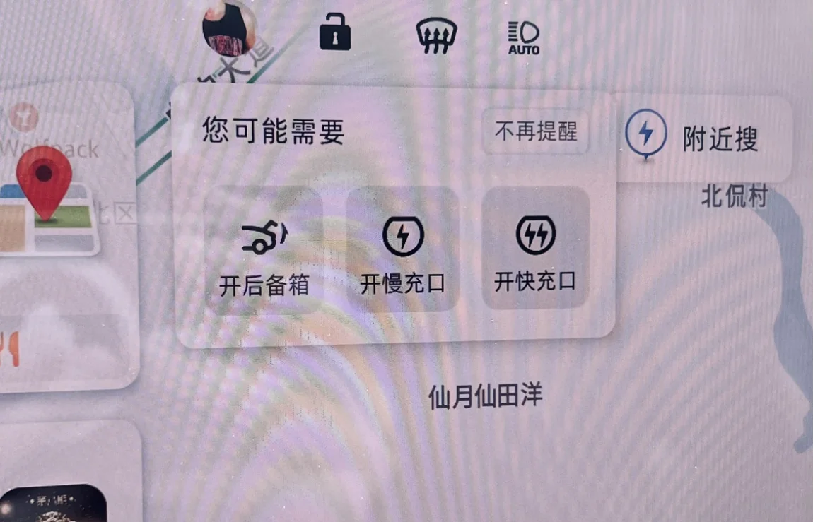 还有新增P档快捷弹窗功能,可设置挂入P档快速自动开启后备箱、快充口、慢充口。