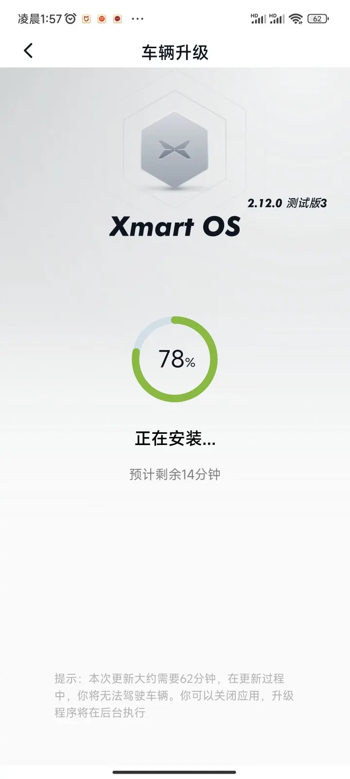 本次的版本大更新非常多内容,所以第一次收到升级包安装的时间是我遇到的升级里面最久的一次,长达62分钟!如果不是我这样的发烧友,建议半夜预约升级就好,三点自动安装升级,早上出发就是一台最新系统的车车啦。