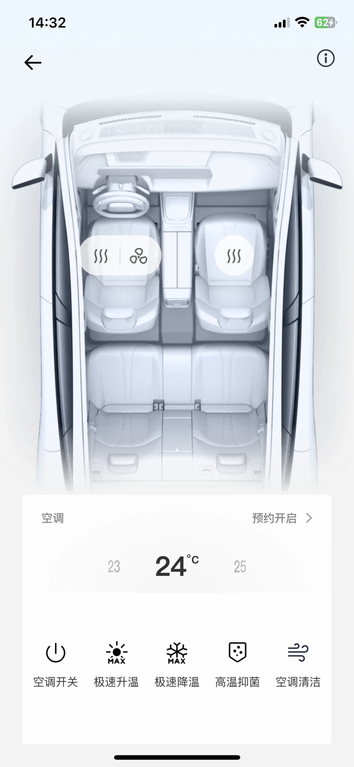支持车主通过手机 App,远程控制座椅通风、加热,舒适出行,无关冬夏