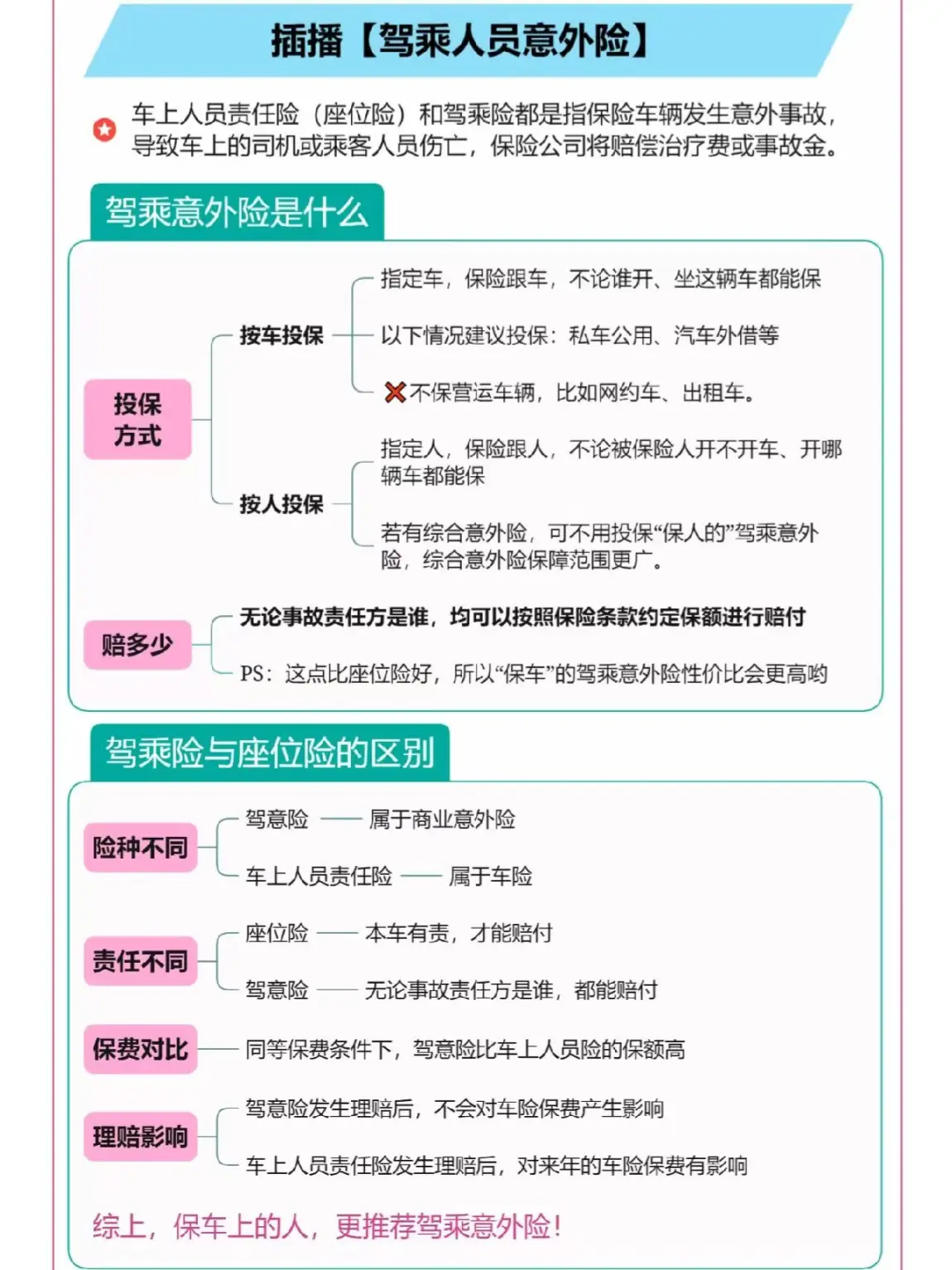 ✅驾乘意外险(建议购买)保障自己和车上的人员的意外住院费用及伤亡赔偿,有保障,性比价高,而且出险后对车险保费没影响。